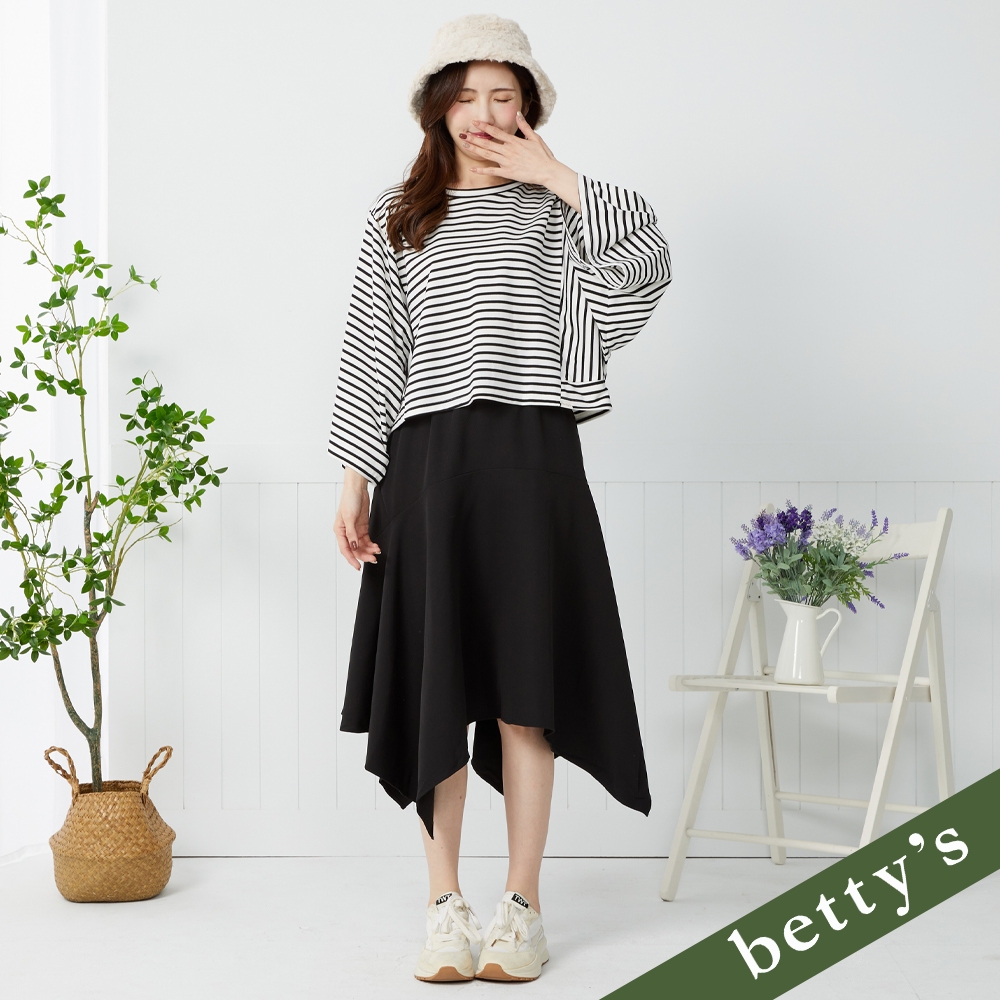betty’s貝蒂思(35)寬版拼接素面蝙蝠袖T-shirt(共二色)