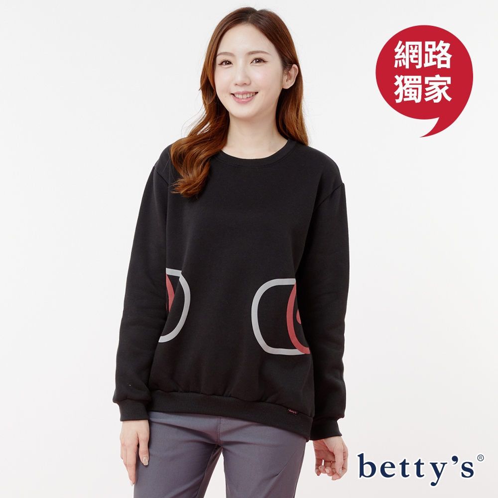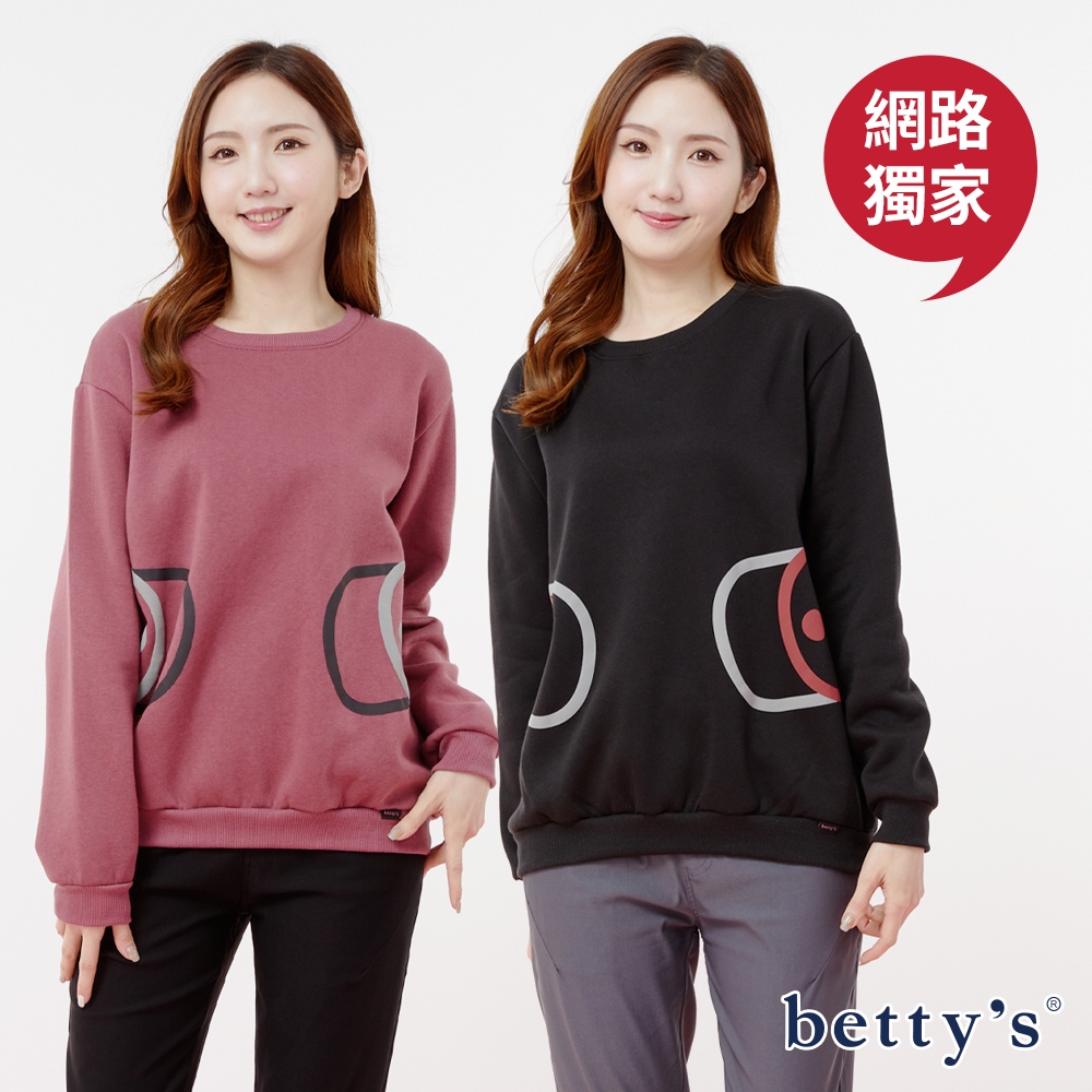 betty’s貝蒂思(23)塗鴉假口袋印花內刷毛T-shirt(共二色)紫紅色,F|黑色,FSweatshirtsbetty’s貝蒂思