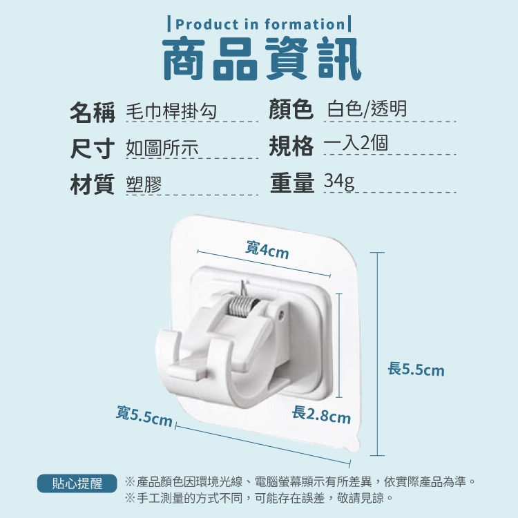 窗簾桿固定夾 伸縮桿掛架 毛巾桿掛勾 掛鈎 掛勾 浴室掛勾 壁掛架 固定器 衛浴用品 黏貼掛勾【小麥購物】【Y453】白色|2入一組|透明|2入一組Hooks 小麥購物