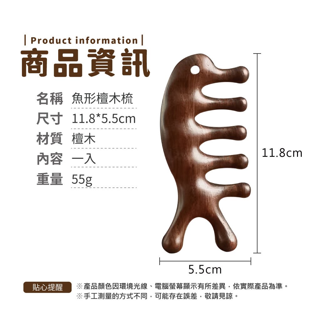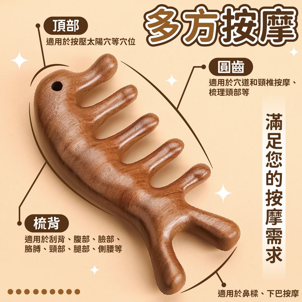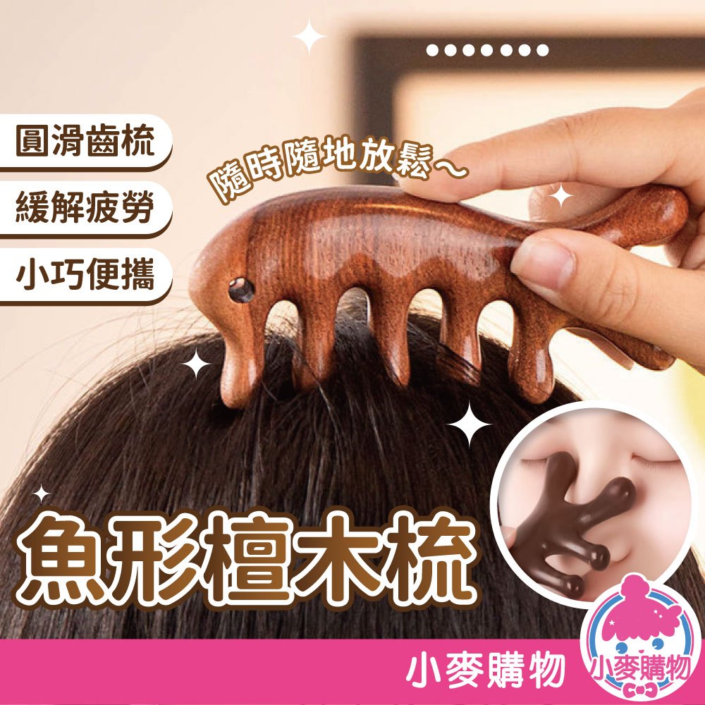 魚形檀木梳 疏通經絡 原木梳 按摩 刮頭皮梳 按摩器 金絲檀木頭皮按摩 按摩梳 魚型按摩梳 梳子【小麥購物】【G585】魚形款|小款Hair Tools 小麥購物
