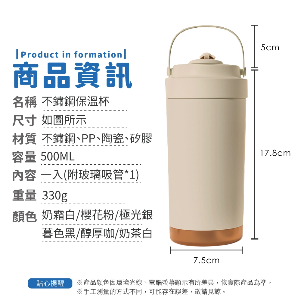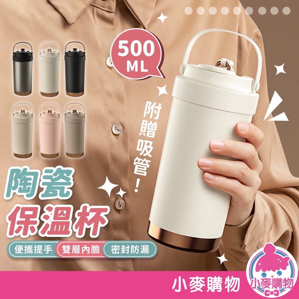 陶瓷保溫杯 500ml 附吸管 陶瓷咖啡杯 陶瓷保溫瓶 吸管保溫杯 保溫瓶 隨行杯 吸管杯【小麥購物】【Y906】奶霜白|500ml 附吸管|奶茶白|500ml 附吸管|醇厚咖|500ml 附吸管|極光銀|500ml 附吸管|櫻花粉|500ml 附吸管|暮色黑|500ml 附吸管Water Bottles & Accessories 小麥購物