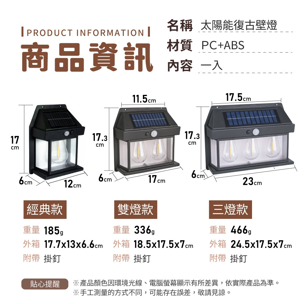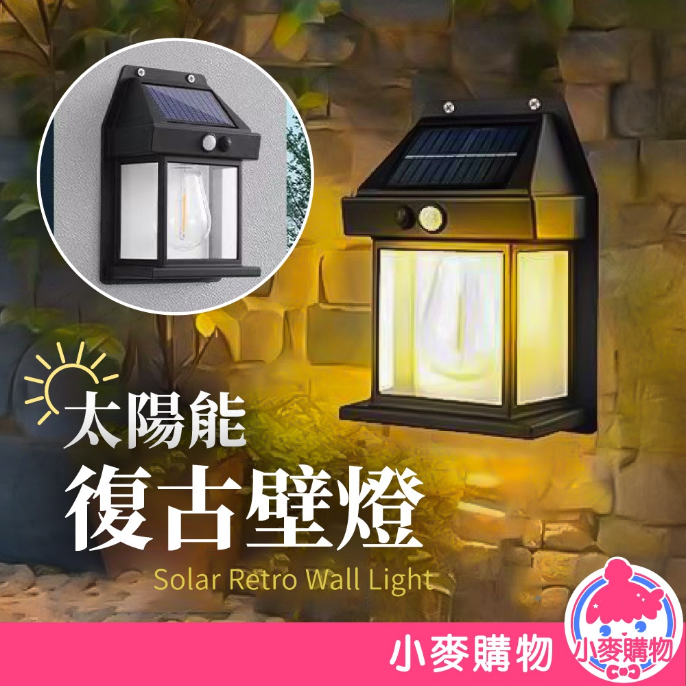 太陽能復古壁燈 庭院燈 太陽能感應燈 太陽能燈 太陽能庭院燈 戶外燈 復古庭院燈 防水燈【小麥購物】【C624】經典款|雙燈款|三燈款 小麥購物