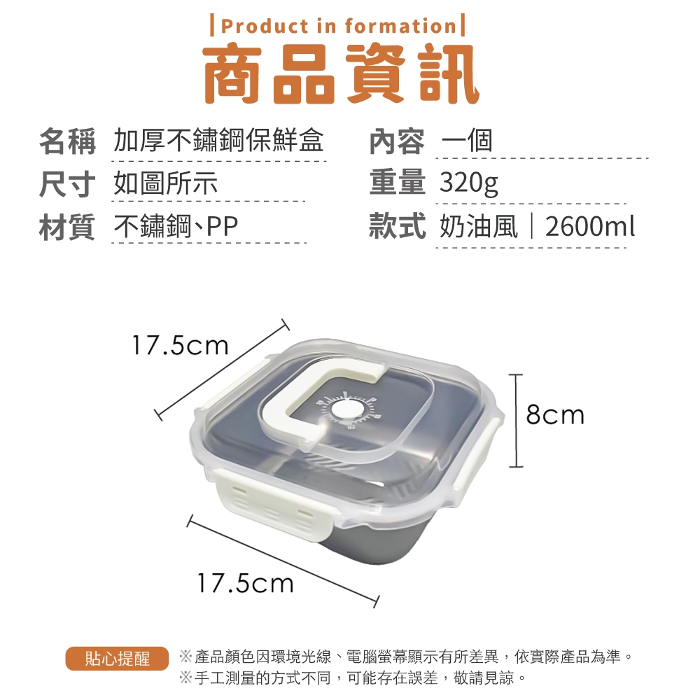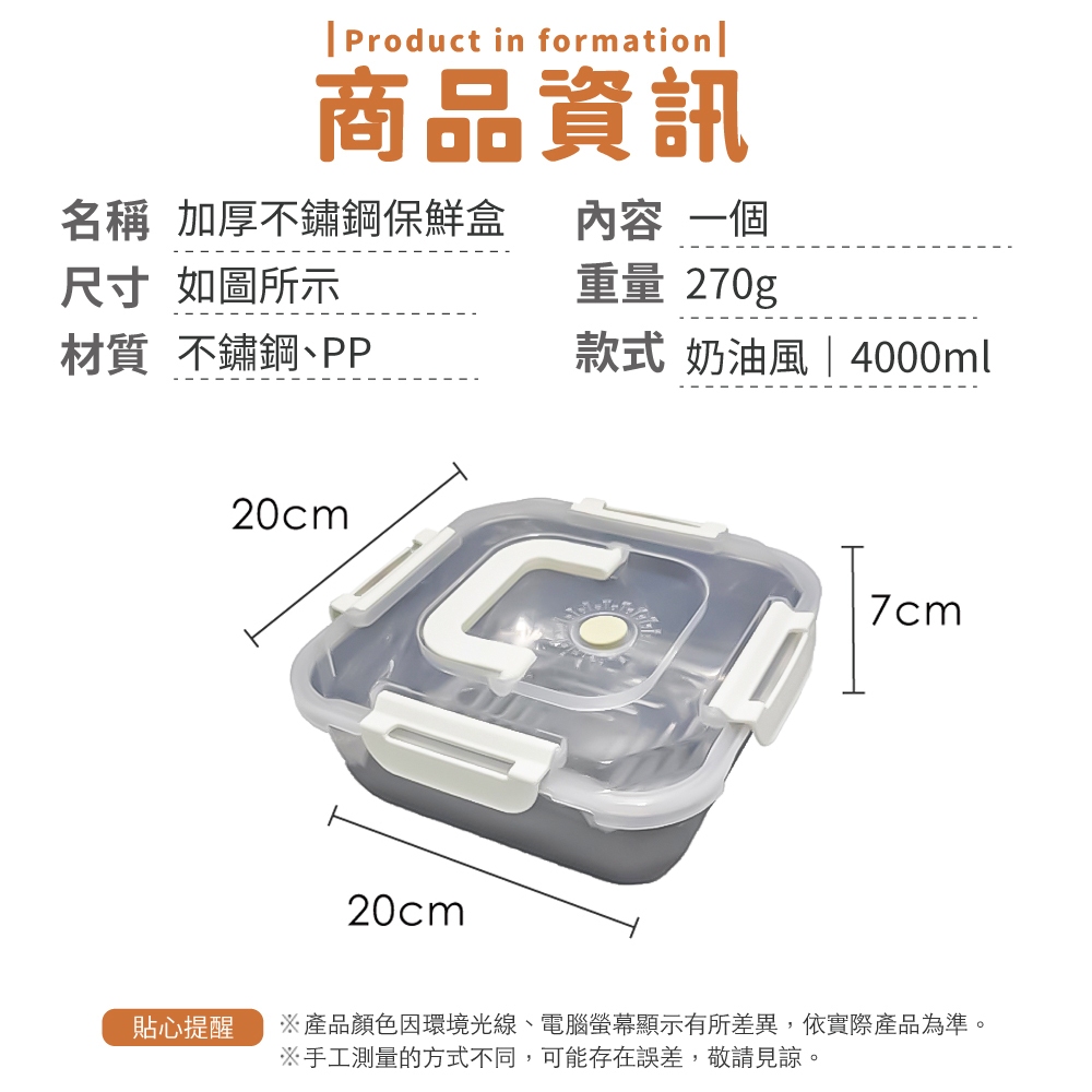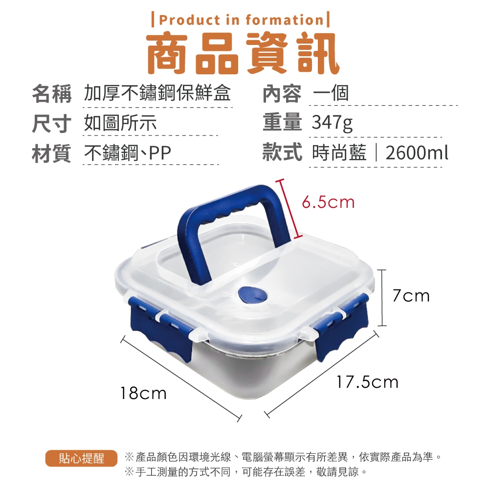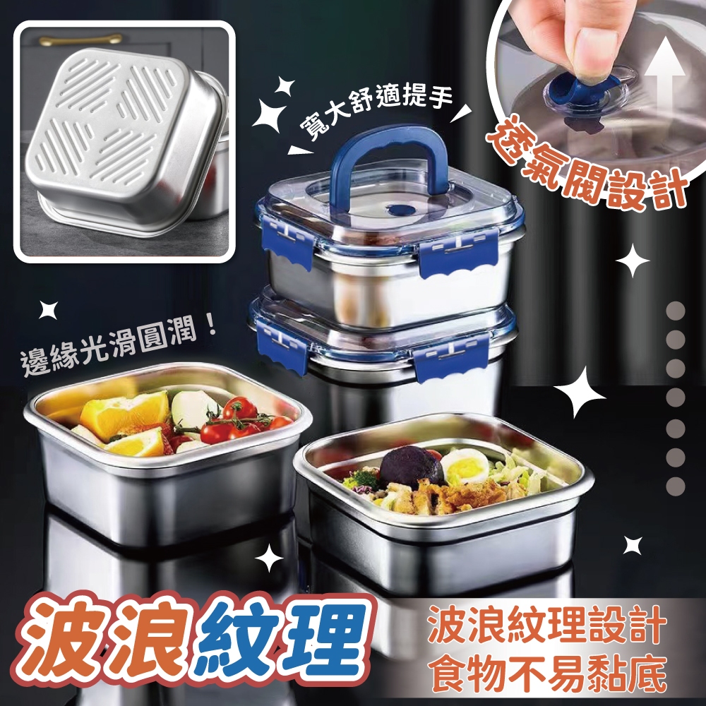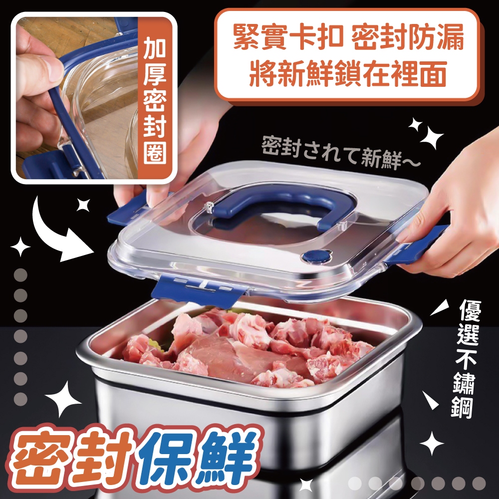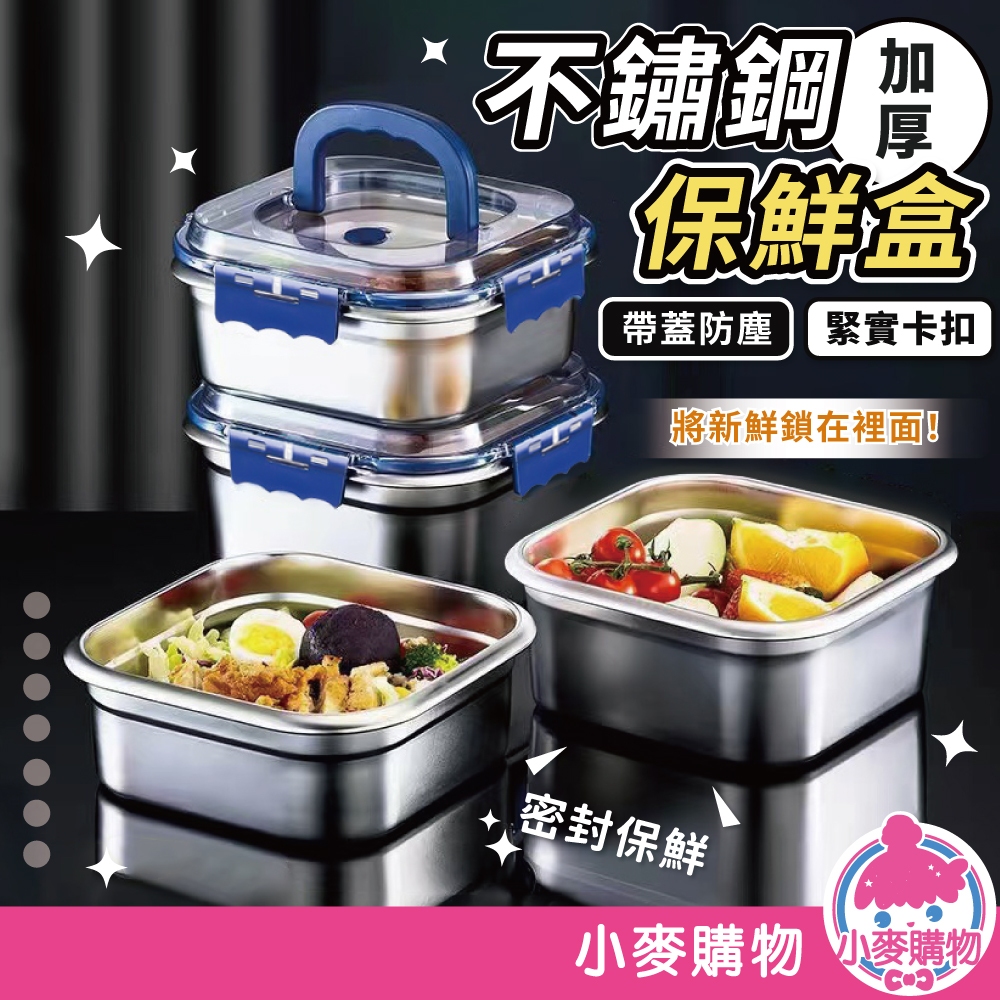 加厚不鏽鋼保鮮盒 不銹鋼保鮮盒 密封 手提 冰箱收納盒 保鮮 大容量 耐高溫 保鮮盒【小麥購物】【G872】時尚藍|2600ml|奶油風|2600ml|奶油風|4000mlFood Storage 小麥購物