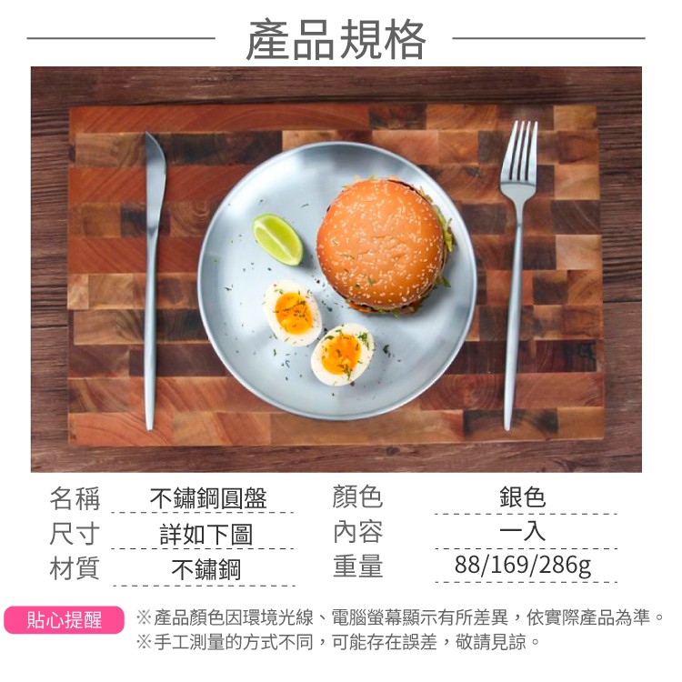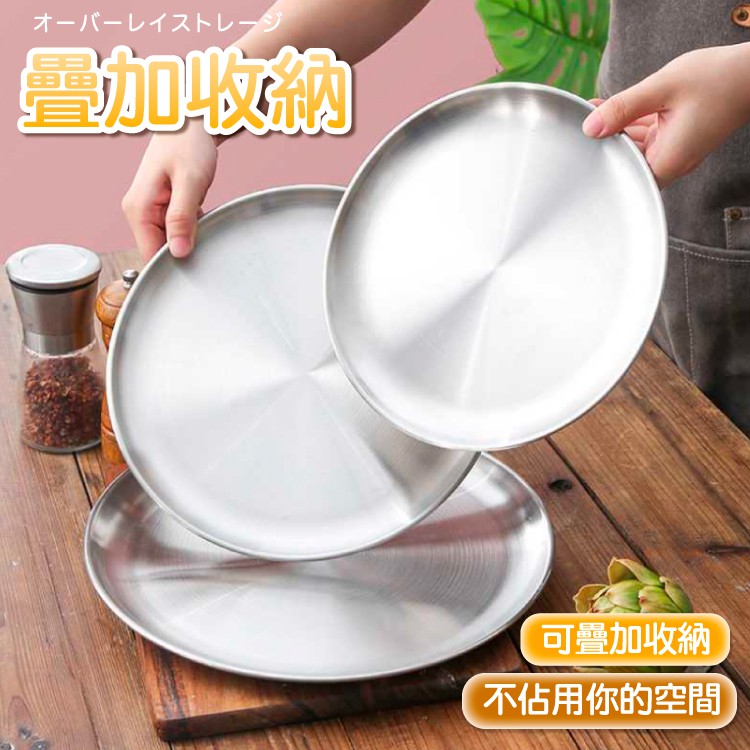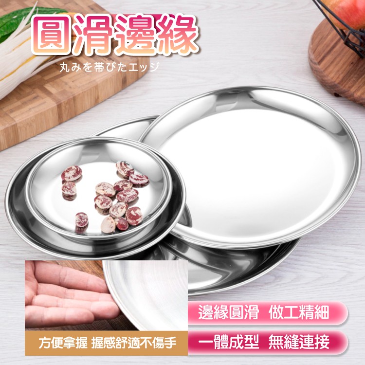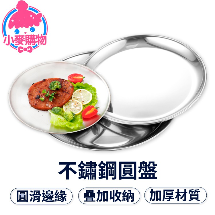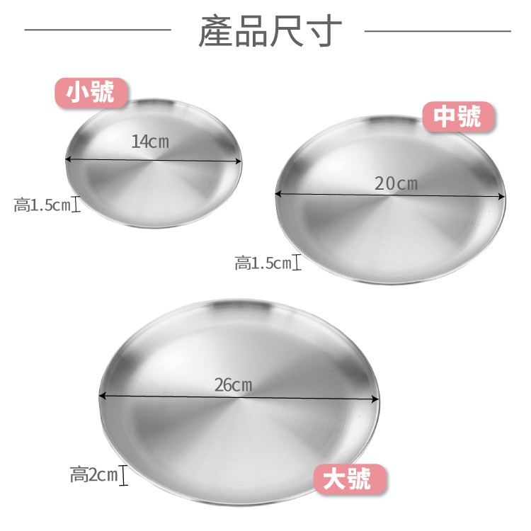 不鏽鋼圓盤 小圓盤 不鏽鋼盤 圓盤 碟子 家用菜盤 料理盤子 烤肉盤 水果盤 餐具 托盤 淺盤【小麥購物】【Y710】中號 20cm|大號 26cm|小號 14cmPlates 小麥購物