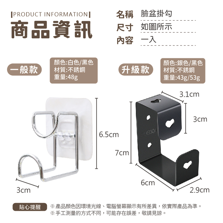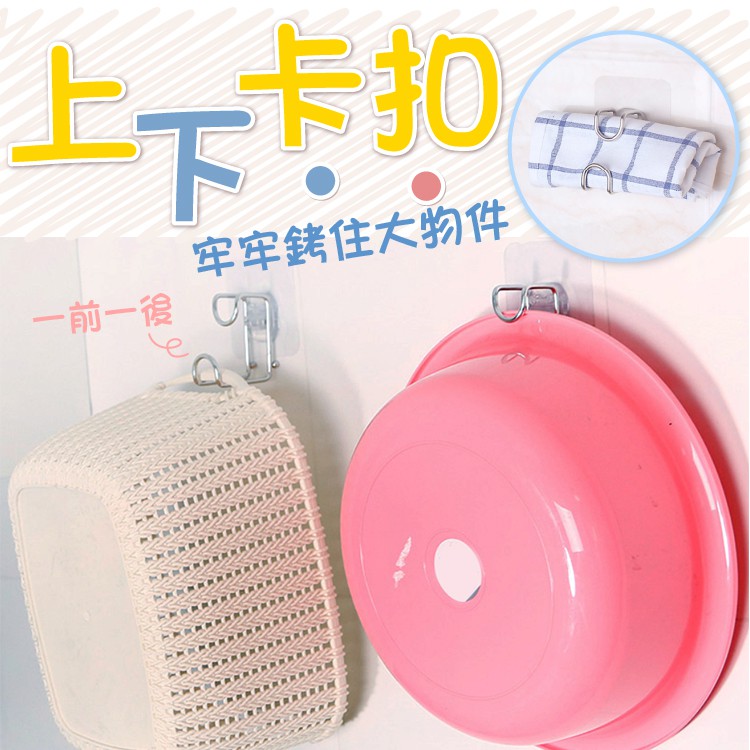 臉盆掛勾 不鏽鋼掛勾 掛鉤 掛鈎 掛勾 掛架 浴室掛勾 免打孔 黏貼式 臉盆 浴室收納 廚房收納【小麥購物】【Y046】升級款|銀色|基礎款|銀色Hooks 小麥購物