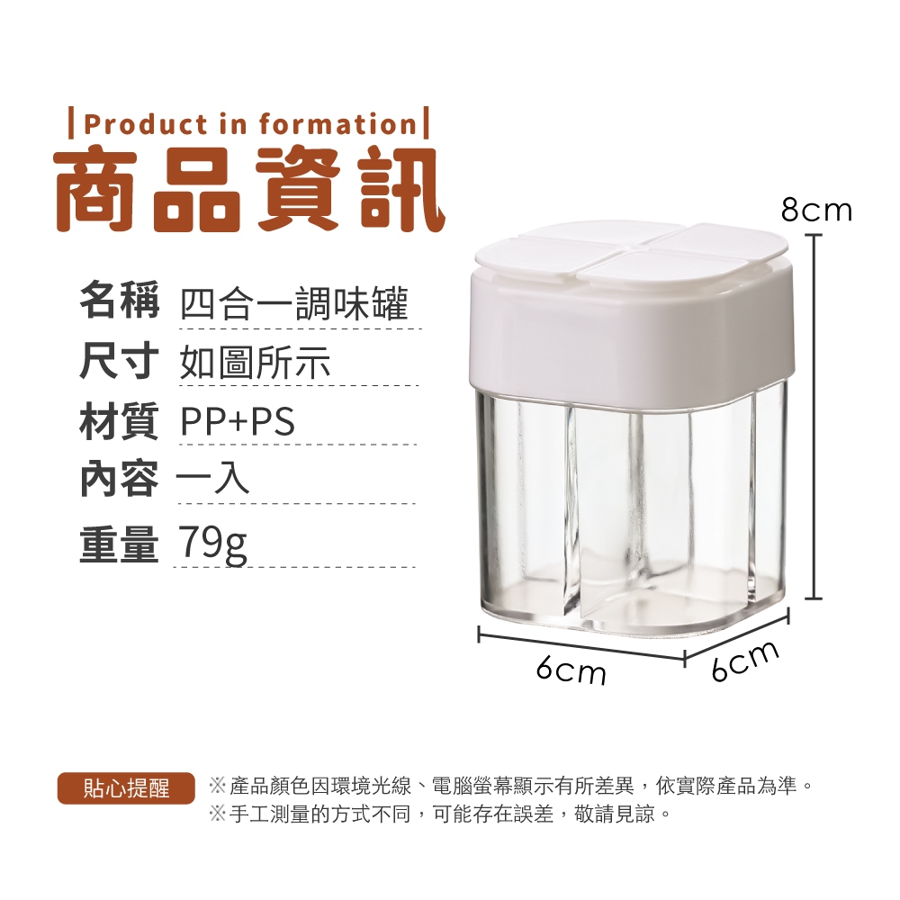 四合一調味罐 四分格 掀蓋調味罐 調料罐 調味罐 調味料罐 密封 戶外燒烤調料罐 烤肉 露營必備【小麥購物】【G812】白色Spatulas & Cooking Tweezers 小麥購物