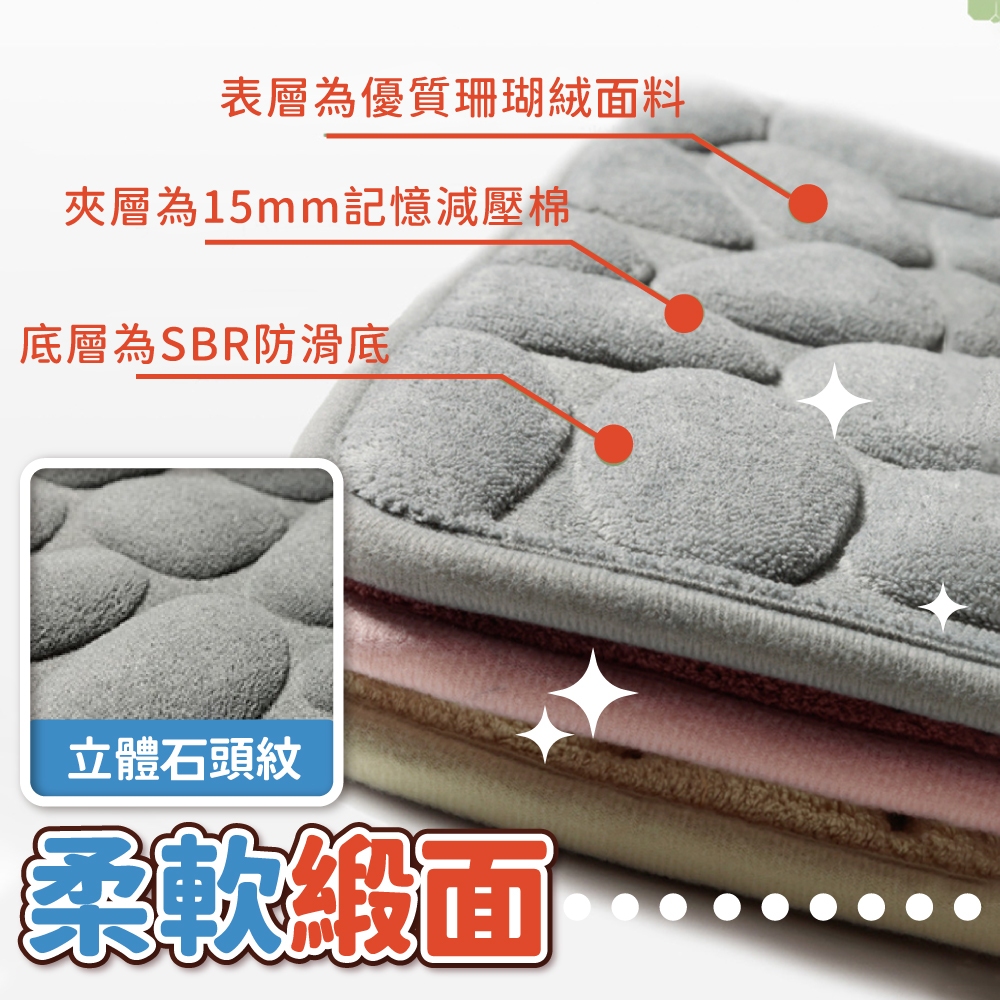 記憶棉石頭紋腳踏墊 浴室腳踏墊 地墊 玄關腳踏墊 廚房地墊 防滑地墊 珊瑚絨地墊 記憶地墊【小麥購物】【C527】淺駝色|咖啡色|黑色|淺灰色Floor Mats 小麥購物