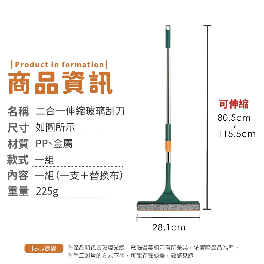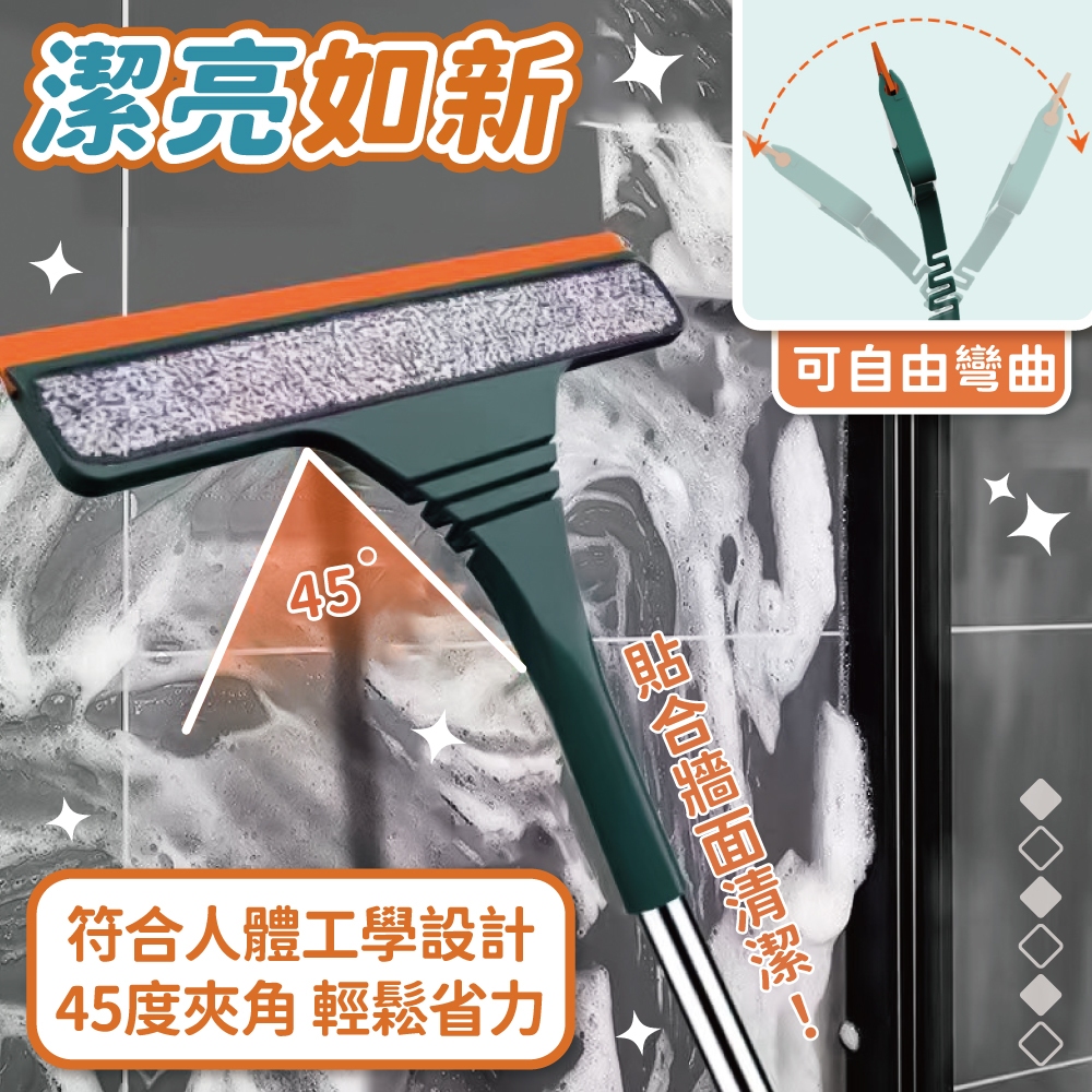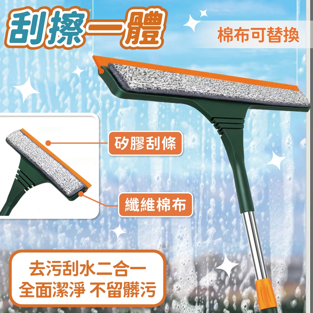 二合一伸縮玻璃刮刀 擦玻璃神器 雙面玻璃清潔器 玻璃清潔 擦窗神器 玻璃刷 玻璃刮刀 窗戶【小麥購物】【C588】一組(一支+替換布)|替換布Cleaning Brushes 小麥購物