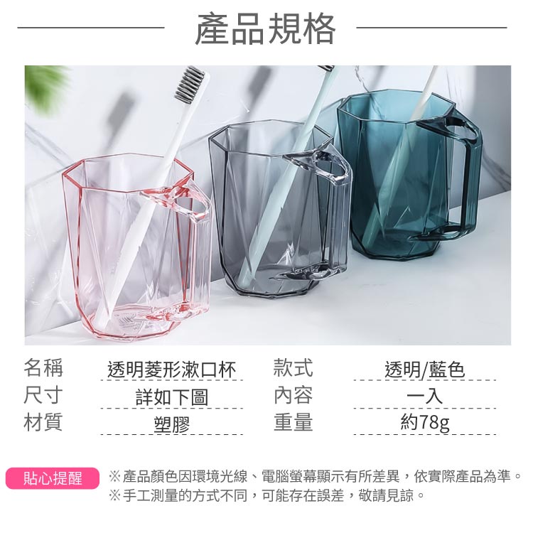 菱形漱口杯 透明漱口杯 造型漱口杯 漱口杯 牙刷 杯子 衛浴 浴室 插槽設計 牙刷收納 簡約 杯【小麥購物】【Y293】透明|藍色Toothbrush Holders & Toothpaste Dispensers 小麥購物