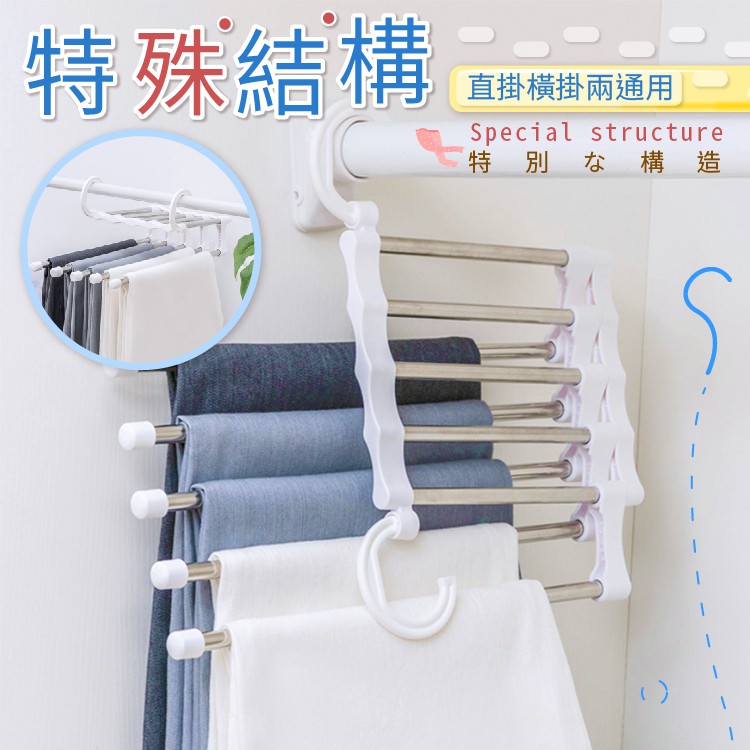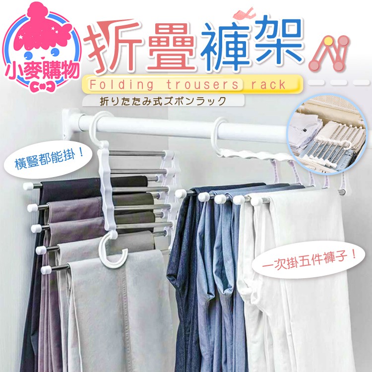 折疊褲架【小麥購物】24hr出貨【C227】魔術褲架 折疊衣架 收納 褲架 曬衣架 伸縮架 旅行 行李白色|5掛|白色|5掛防滑款|白色|6掛Hangers & Pegs 小麥購物