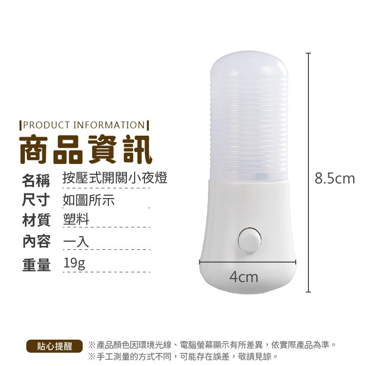 按壓開關小夜燈 小夜燈 床頭燈 LED小燈 宿舍燈 夜燈 暖光燈 白光燈 伴睡燈 走廊燈 燈【小麥購物】【Y177】浪漫黃|優雅白 小麥購物