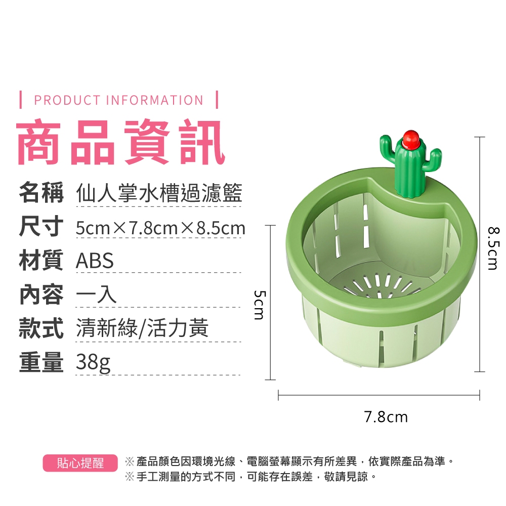仙人掌水槽過濾籃 廚房水槽過濾籃 防堵防臭 防蟲過濾網 洗碗槽過濾網 過濾網 防堵過濾籃【小麥購物】【C524】清新綠|活力黃Strainers 小麥購物