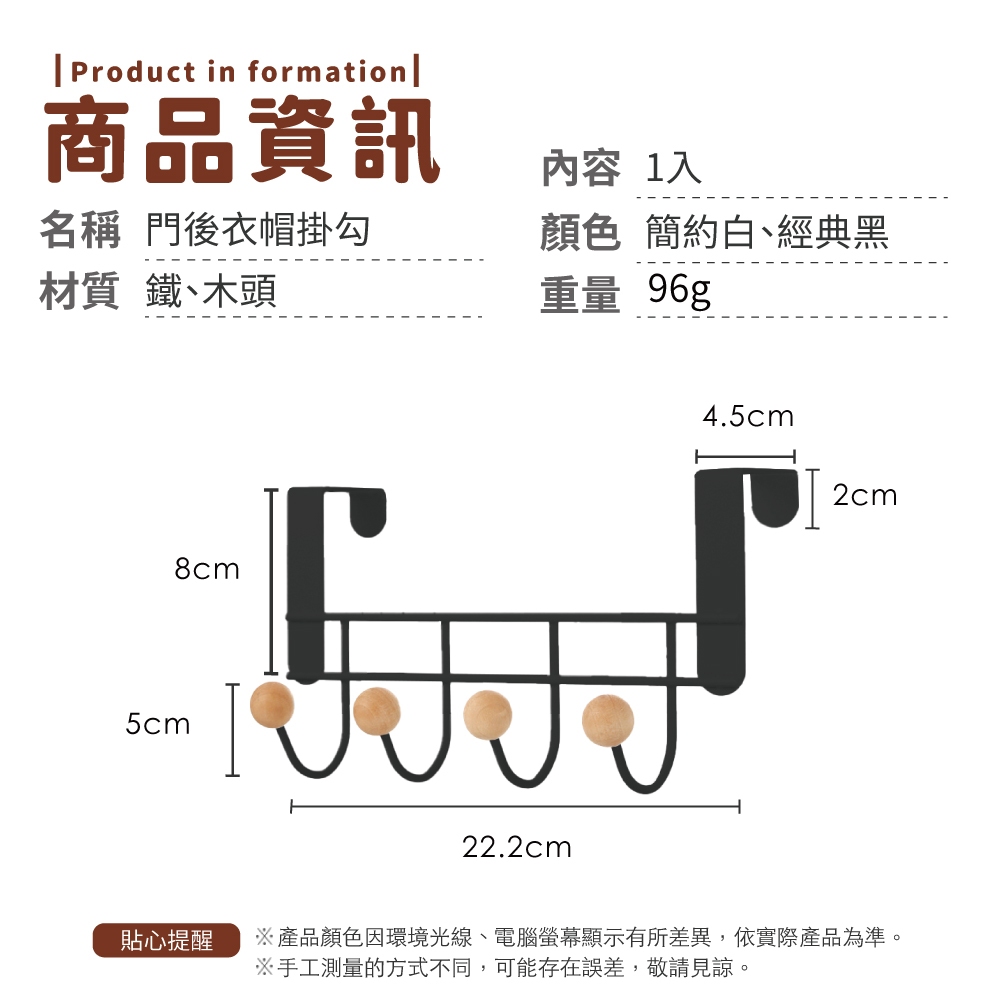 門後衣帽掛鈎 掛勾 免釘掛勾 圓珠掛勾 浴室掛勾 門後掛鈎 掛鈎 門後掛架置物【小麥購物】【Y952】簡約白|經典黑Hooks 小麥購物