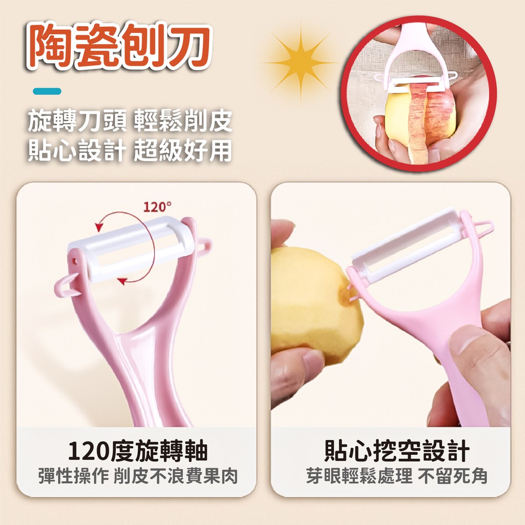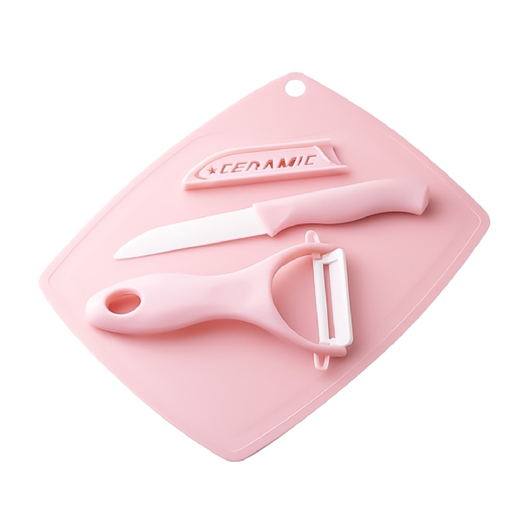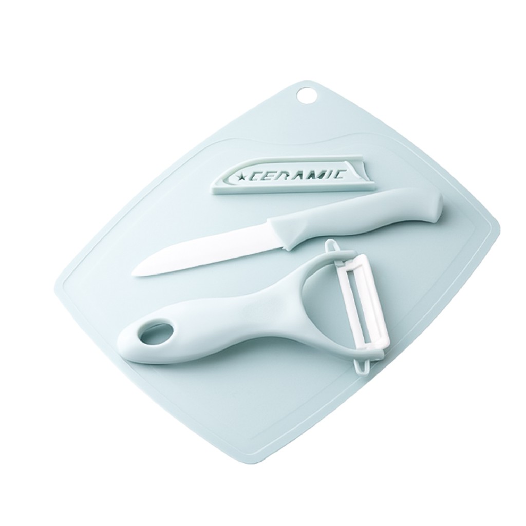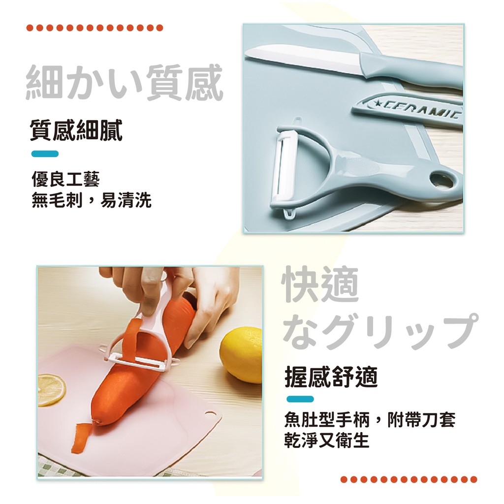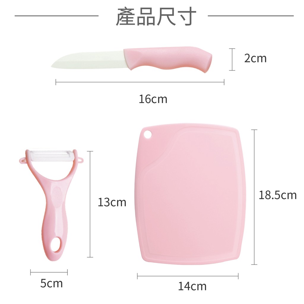 陶瓷水果刀三件組【小麥購物】24H出貨台灣現貨【C008】廚房用具 水果刀 陶瓷刀 刀片保護套 砧板 削皮器藍|粉Graters, Peelers & Cutters 小麥購物