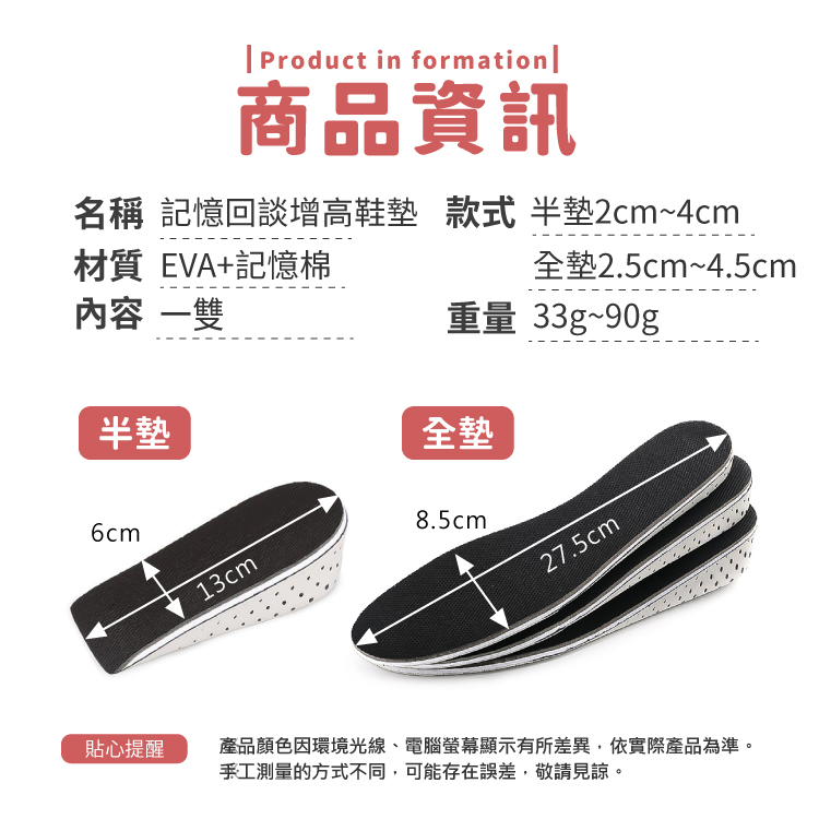 增高鞋墊 記憶鞋墊 鞋墊 減壓墊 增高墊 內增高鞋墊 彈性鞋墊 隱形鞋墊 隱形增高墊 記憶回彈【小麥購物】【Y521】全墊2.5cm|全墊3.5cm|全墊4.5cm|半墊2cm|半墊3cm|半墊4cmInsoles & Heel Liners 小麥購物