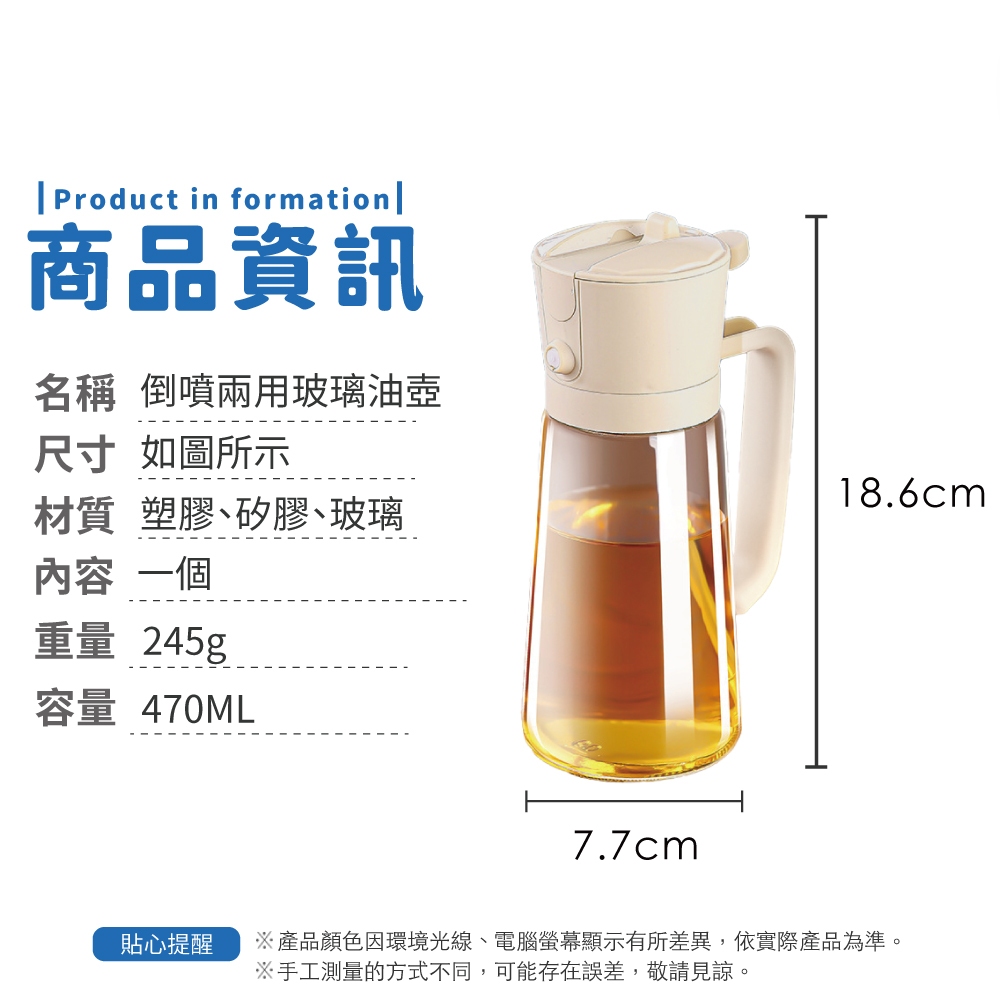 倒噴兩用玻璃油壺 噴油瓶 玻璃油壺 油壺 油罐 噴霧瓶 油瓶 調味罐 油壺 玻璃油瓶 調味瓶【小麥購物】【G864】白色|470mlOthers 小麥購物