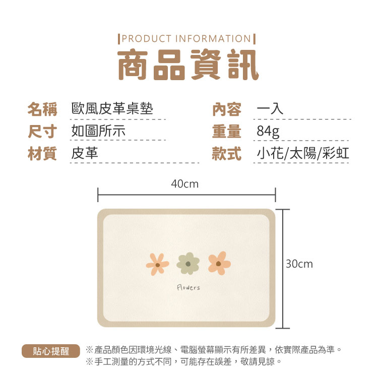 北歐風皮革桌墊 餐墊 隔熱餐墊 防燙餐墊 皮革餐墊 防水餐墊 可水洗餐墊 防油餐墊 餐廚 桌墊【小麥購物】【G371】小花|陽光|彩虹Placemats & Coasters 小麥購物