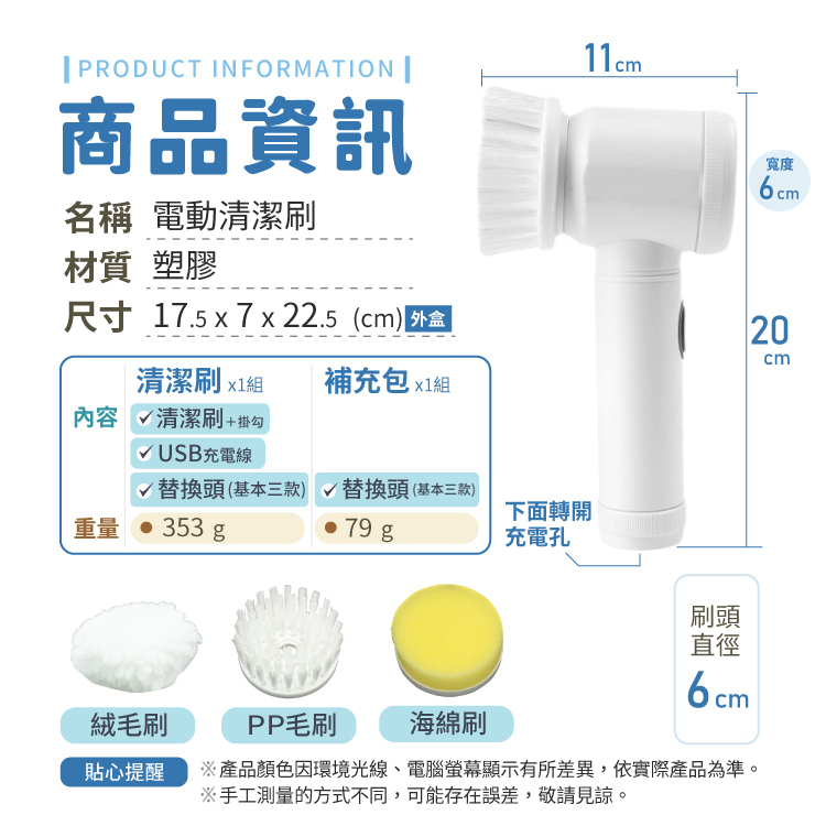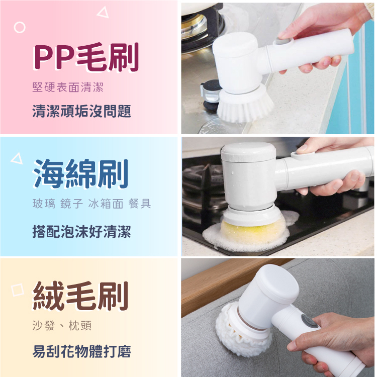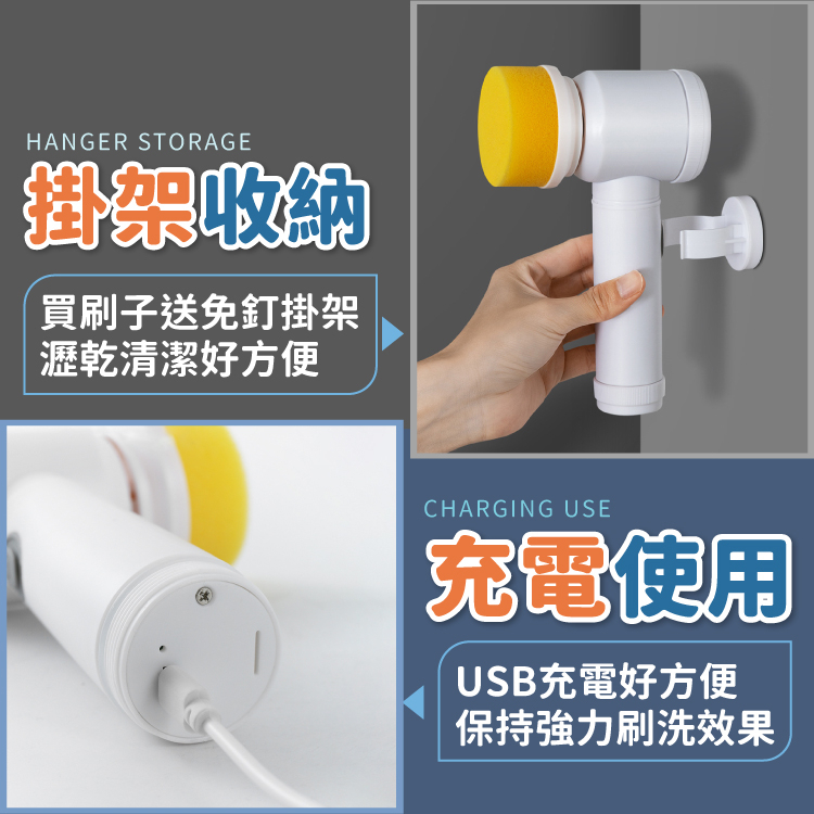 電動清潔刷 清潔刷 電動刷 洗碗刷 地板刷 刷洗機 懶人清潔刷 刷子 刷具 USB充電 免釘掛架【小麥購物】【Y870】清潔刷|充電款,超商限購6組|替換刷頭|3入Cleaning Brushes 小麥購物