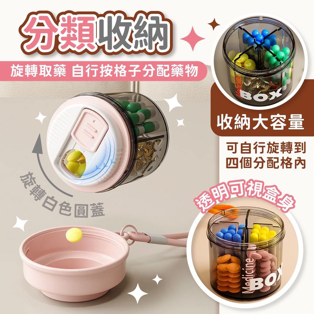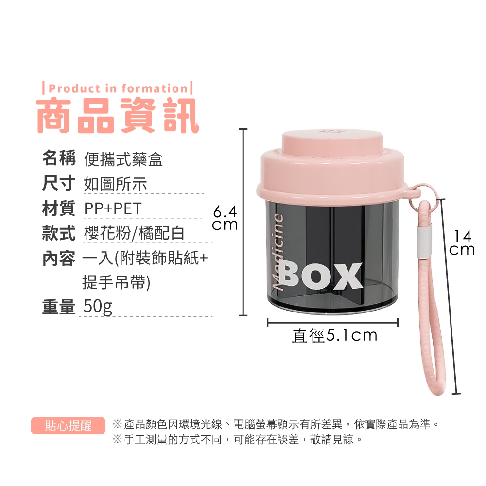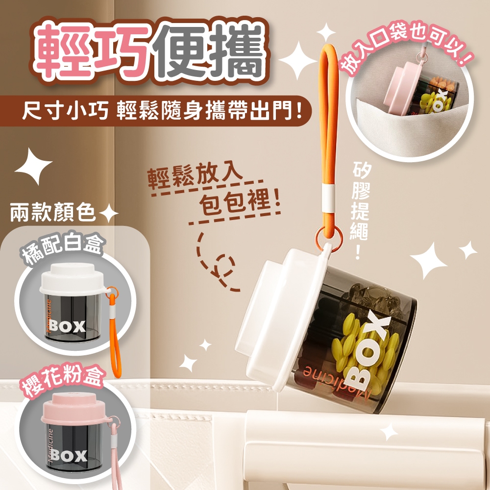 便攜式藥盒 藥盒 旋轉藥盒 便攜式旋轉藥盒 圓形帶蓋藥罐 封裝藥盒 隨身藥盒 分裝藥盒 防潮藥盒【小麥購物】【G787】櫻花粉|橘配白Others 小麥購物