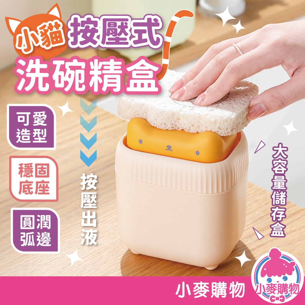 小貓按壓式洗碗精盒 廚房皂液器 洗手液洗潔精壓取器 按壓洗碗精盒 按壓皂液器【小麥購物】【G903】奶油貓|薄荷貓Soap Dispensers, Holders & Boxes 小麥購物