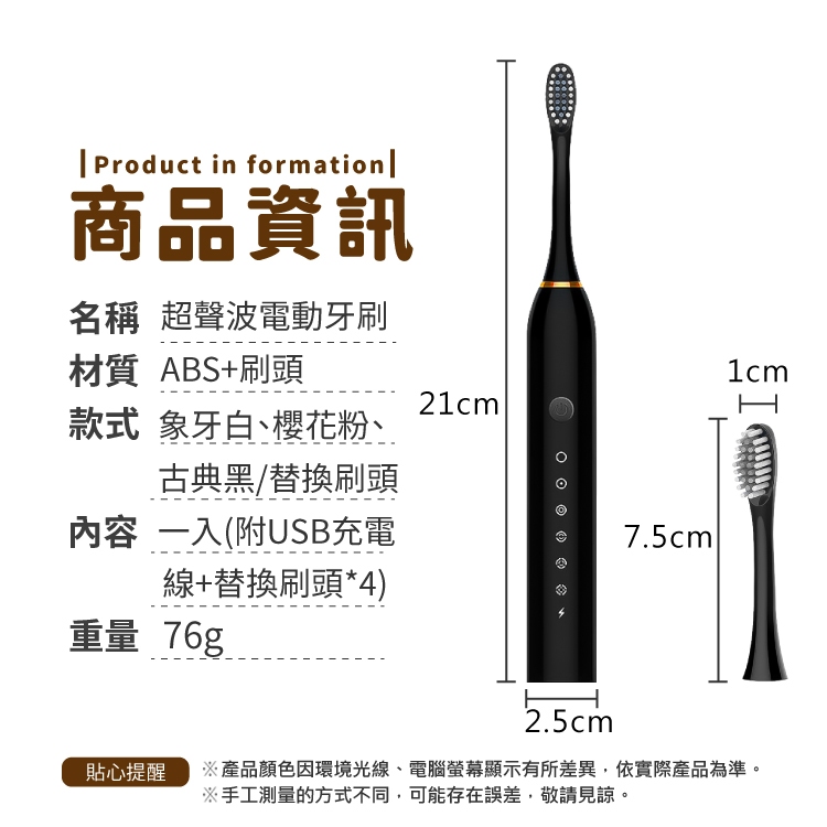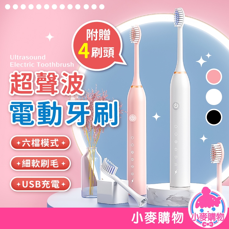 超聲波電動牙刷 牙刷 聲波電動牙刷 電動牙刷 清潔牙刷 音波震動牙刷 電動刷 智能牙刷【小麥購物】【C378】古典黑|送4個刷頭|櫻花粉|送4個刷頭|象牙白|送4個刷頭|古典黑|刷頭|象牙白|刷頭Oral Care 小麥購物