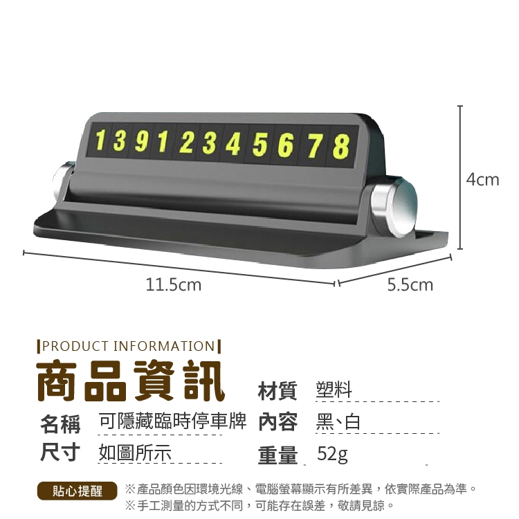 可隱藏臨時停車牌 臨時停車牌 夜光停車牌 臨停車牌 汽車臨停 號碼牌 手機號碼 電話號碼 電話牌【小麥購物】【Y212】黑色|白色Others 小麥購物