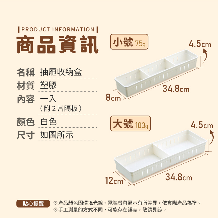抽屜收納盒 收納框 抽屜分隔盒 分類 收納盒 日式分隔盒 置物盒 抽屜收納 整理盒 桌面收納【小麥購物】【C404】小款|附兩片隔板|大款|附兩片隔板Desk Organizers 小麥購物