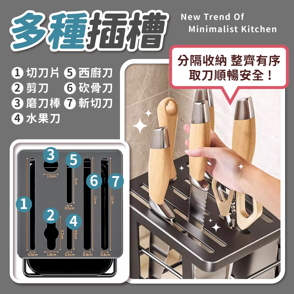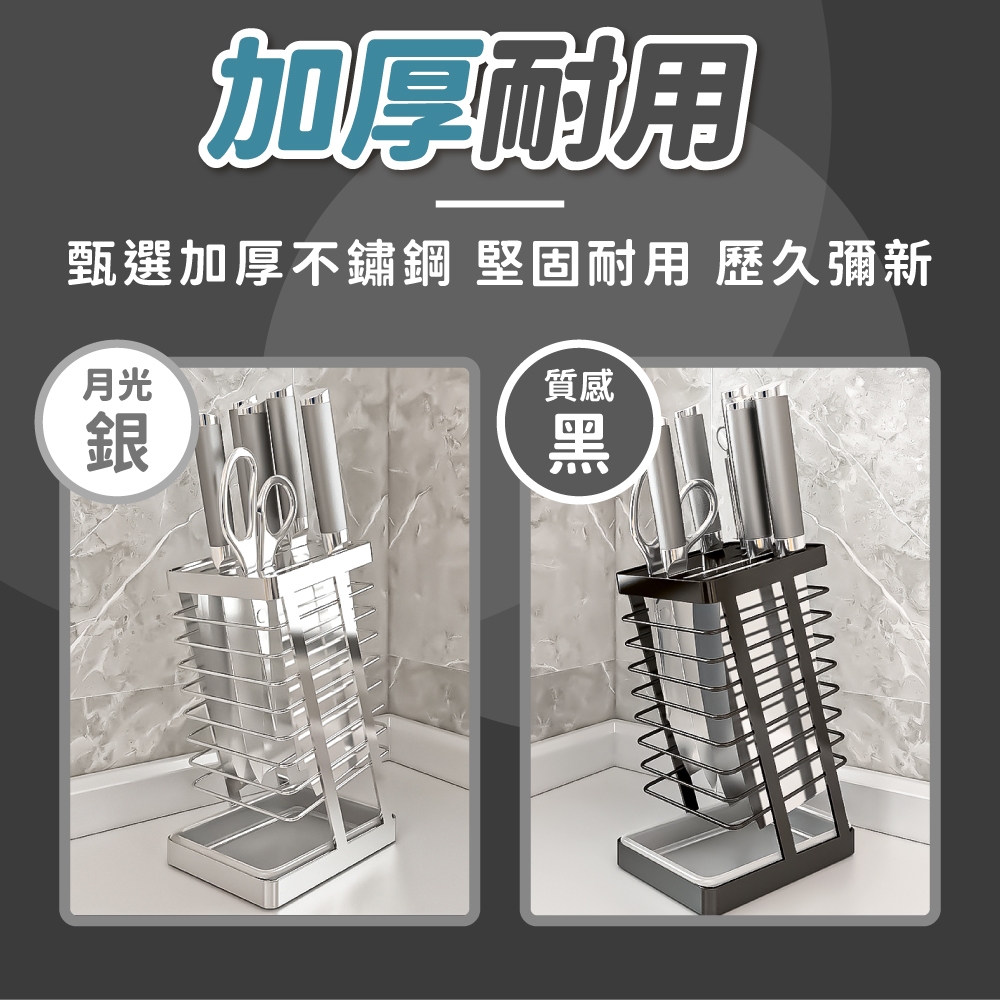 不銹鋼刀具架 不鏽鋼刀架 刀具架 刀架 刀具瀝水架 菜刀收納架 刀具收納架 廚房收納 瀝水刀架【小麥購物】【C597】月光銀|質感黑Kitchen Racks 小麥購物