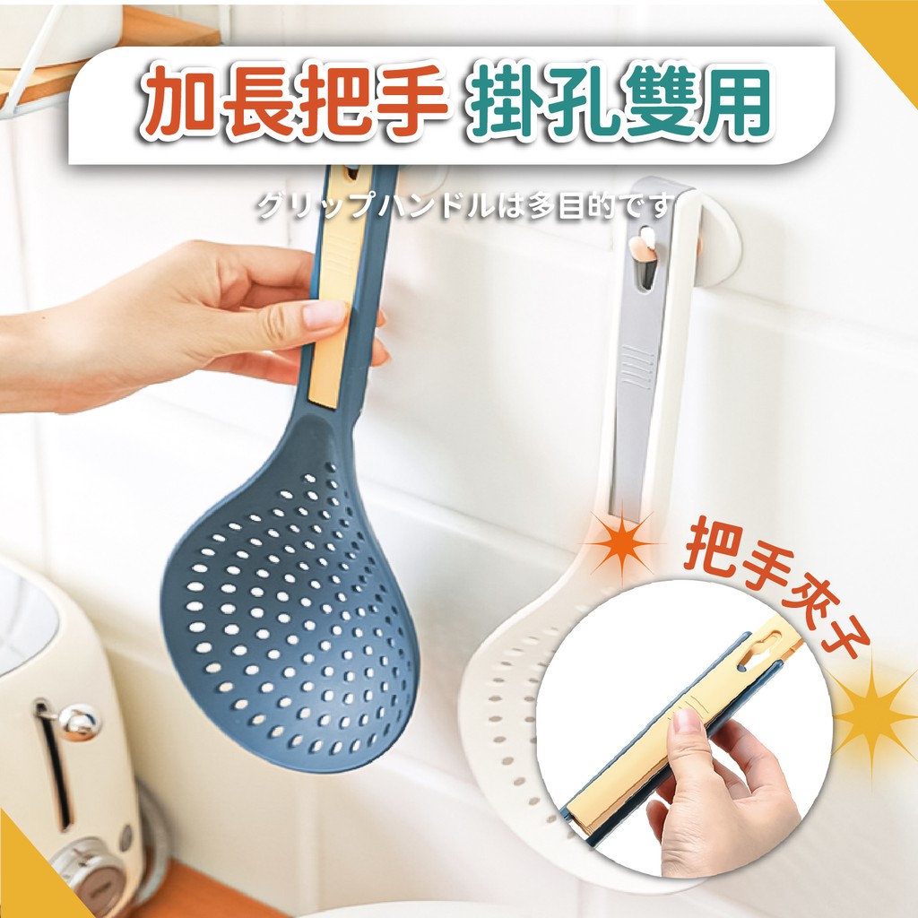 多功能撈勺【小麥購物】24H出貨台灣現貨【Y306】撈麵 漏勺 勺子 撈水餃 火鍋勺 多功能勺 夾子 瀝水勺 湯勺 廚具藍橘|白灰Spatulas & Cooking Tweezers 小麥購物