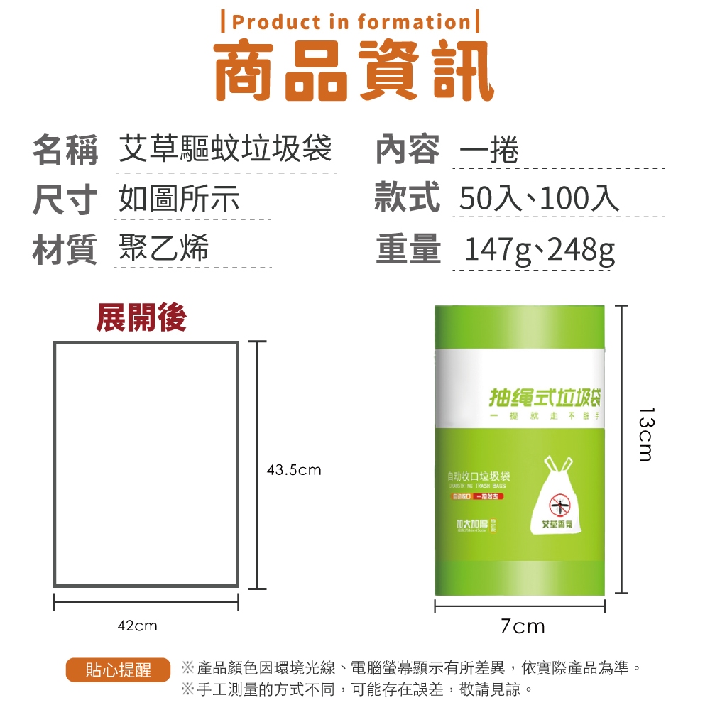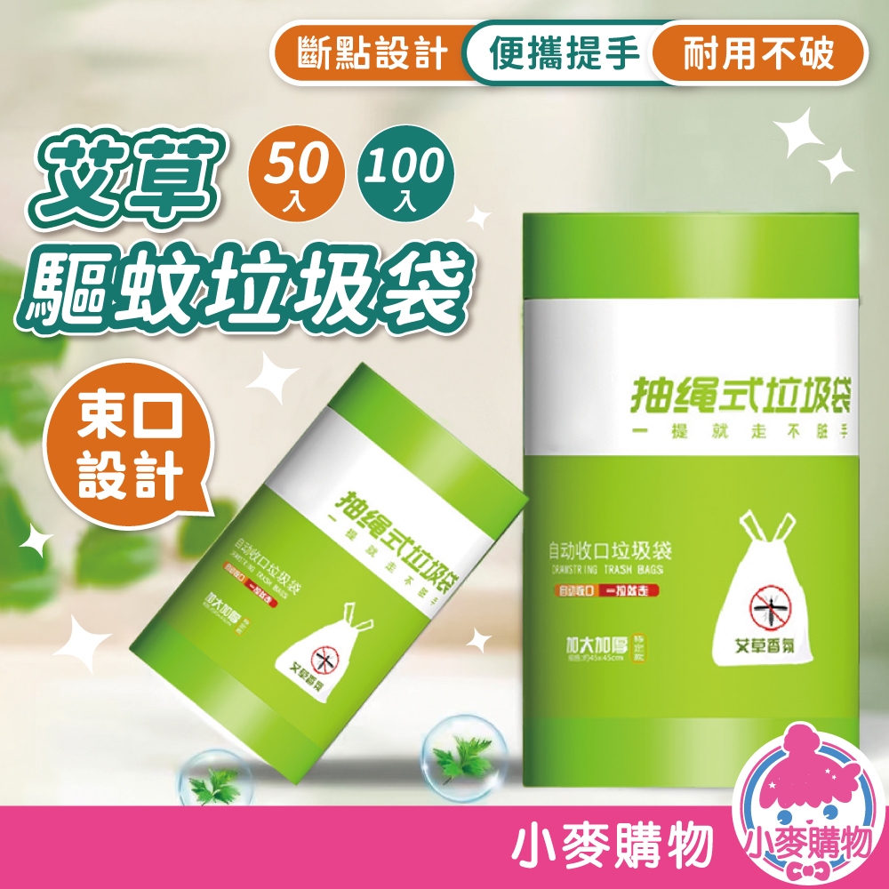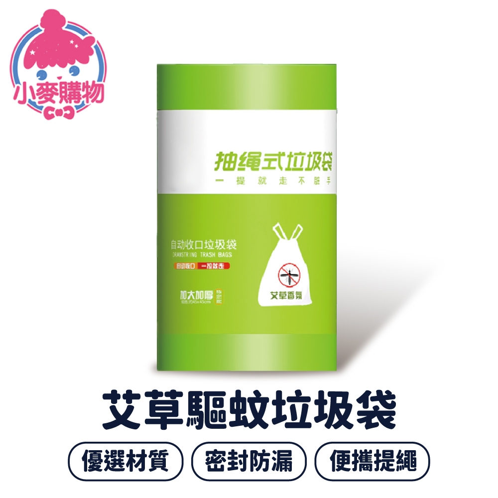 艾草驅蚊垃圾袋 50入 100入 抽繩式垃圾袋 束口垃圾袋 提繩垃圾袋 束口袋 驅蚊 艾草 香氛【小麥購物】【Y056】一捲50入|一捲100入Plastic Bags & Trash Bags 小麥購物