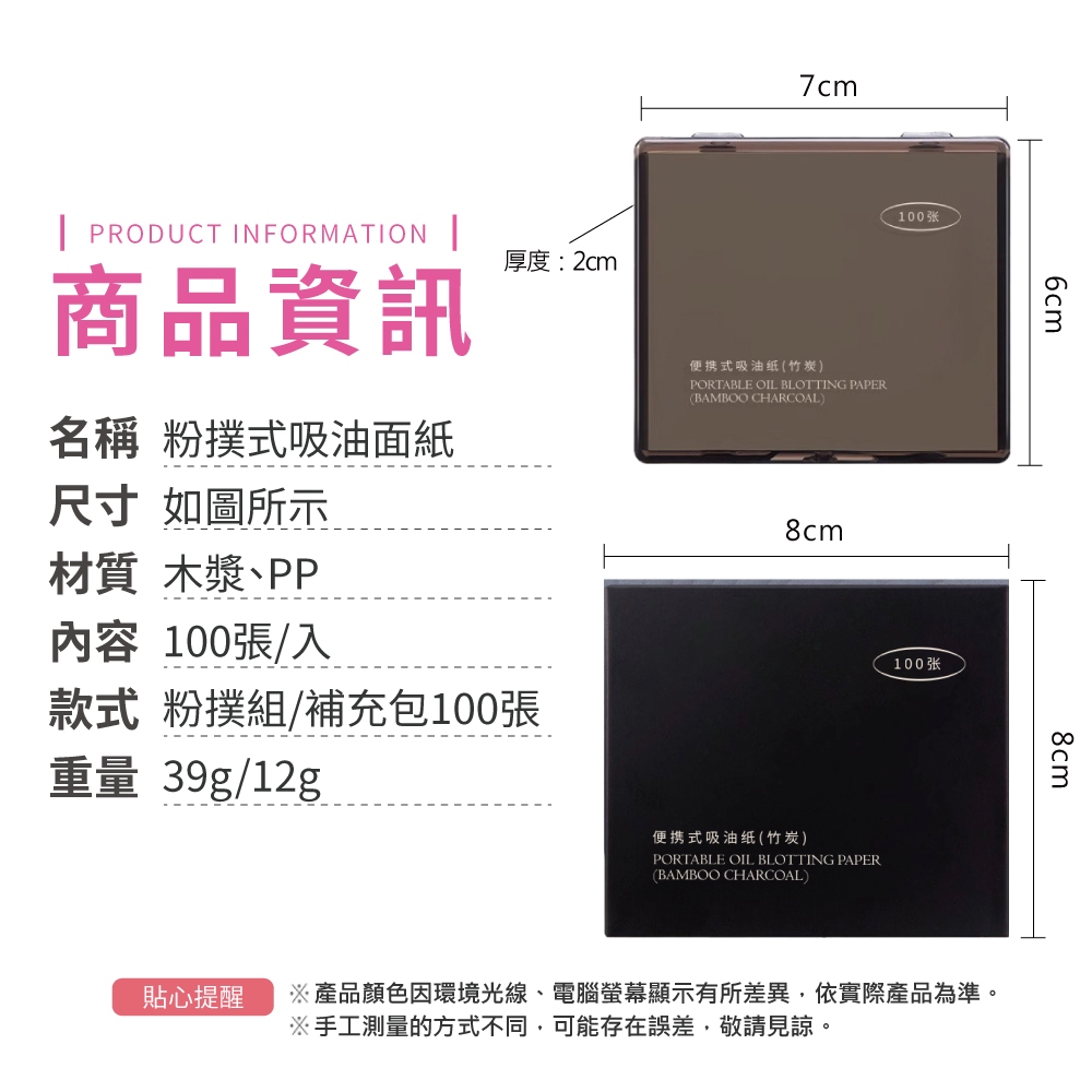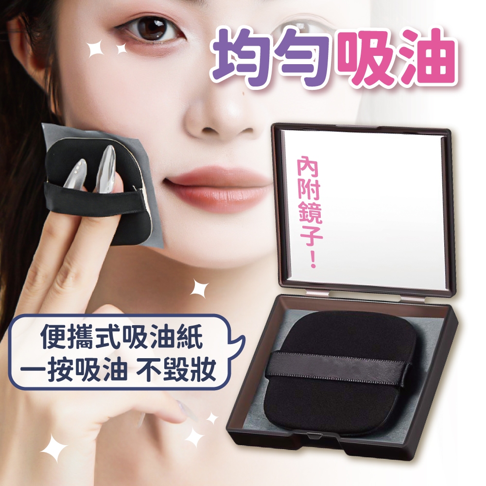 粉撲式吸油面紙 吸油面紙 吸油力NO.1 快速吸油 不破壞臉妝 竹炭 帶粉撲 鏡盒 粉撲 美妝【小麥購物】【S340】粉撲組(粉撲+吸油面紙*100)|補充包100張Blotting Paper 小麥購物