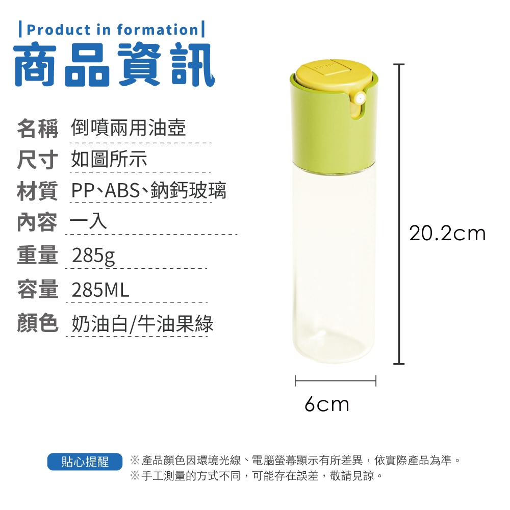 倒噴兩用油壺 調味罐 油壺 玻璃油瓶 調味瓶 醬油瓶 噴油瓶 玻璃油壺 油壺 噴霧瓶 油瓶【小麥購物】【Y334】牛油果綠|奶油白Spatulas & Cooking Tweezers 小麥購物