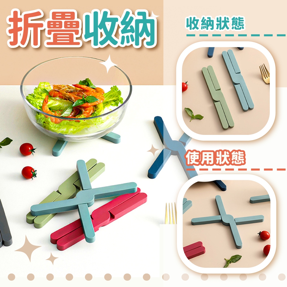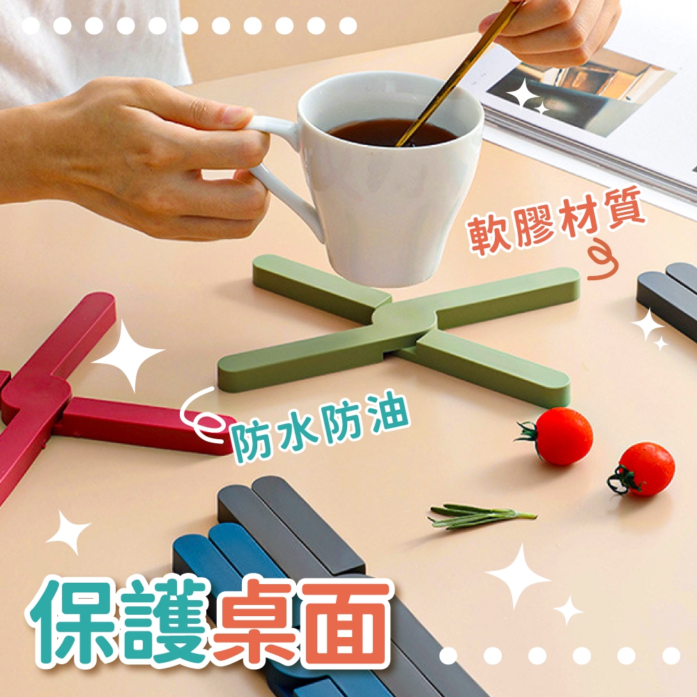 折疊隔熱墊 矽膠隔熱墊 X型折疊隔熱墊 餐墊隔熱墊 止滑墊 杯墊 鍋墊 防滑墊 防燙墊【小麥購物】【G739】湖水綠|珊瑚粉|海軍藍|墨黑色Placemats & Coasters 小麥購物