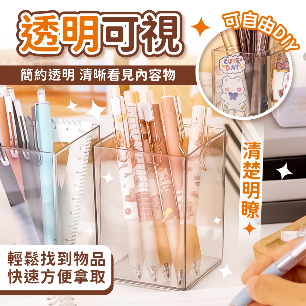 透明筆筒 桌上收納 透明 筆筒 文具 簡約筆筒 收納 辦公用品 化妝品收納 刷具 桌面置物筒【小麥購物】【G793】FDesk Organizers 小麥購物