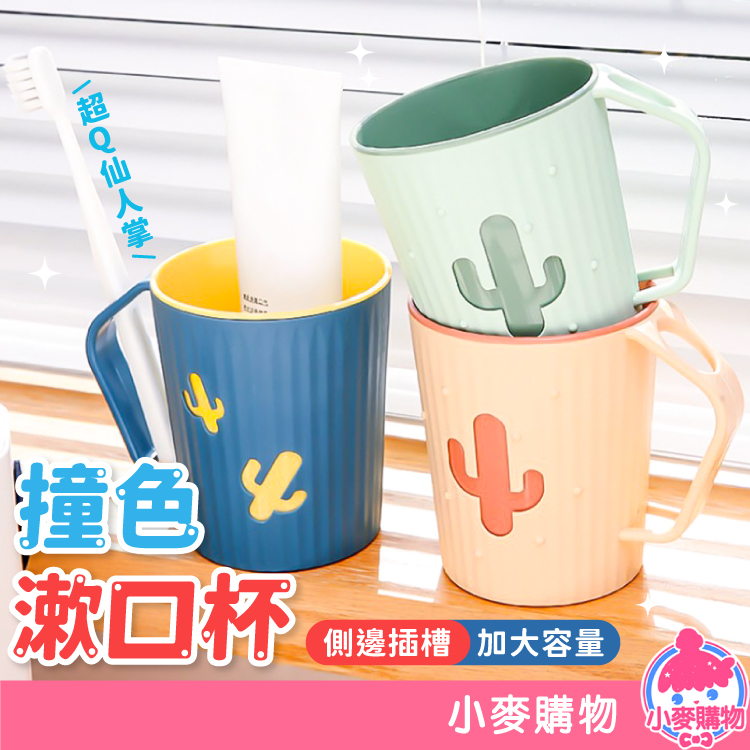 仙人掌漱口杯 牙刷杯 雙色漱口杯 情侶杯 刷牙 浴室 塑膠杯 水杯 帶耳漱口杯 洗潄 盥洗用品 【小麥購物】【G091】撞色粉|仙人掌|撞色藍|仙人掌|撞色綠|仙人掌Toothbrush Holders & Toothpaste Dispensers 小麥購物