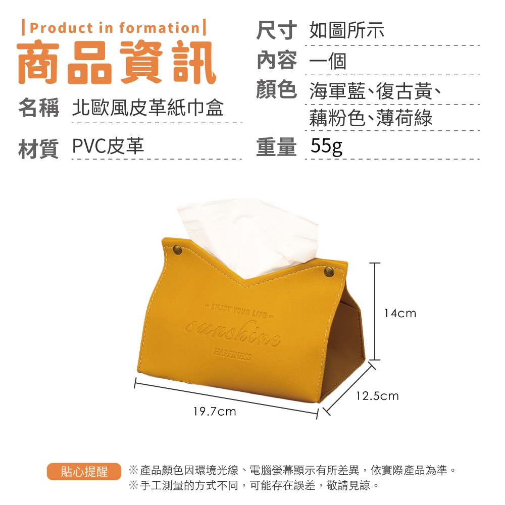 北歐風皮革紙巾盒 衛生紙盒 抽取式面紙盒 皮革面紙套 車用面紙盒 收納面紙盒 居家生活【小麥購物】【G851】復古黃|海軍藍|藕粉色|薄荷綠Tissue Holders 小麥購物