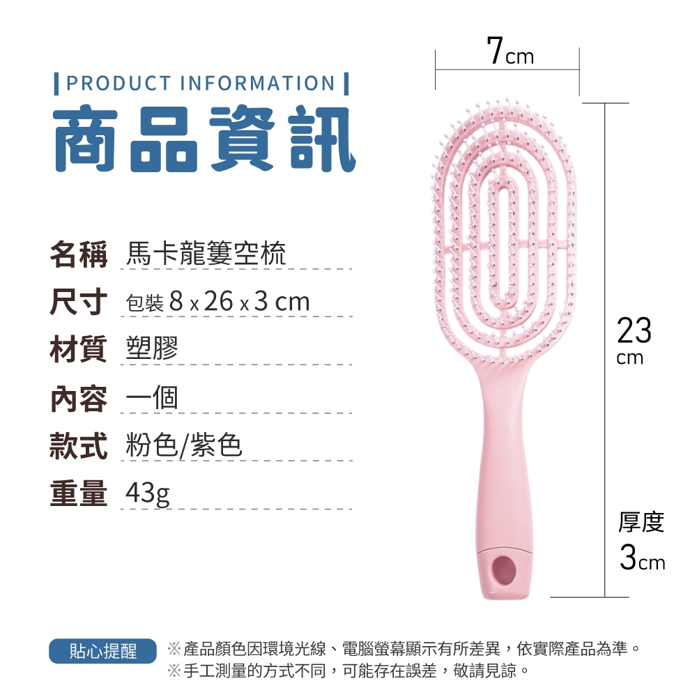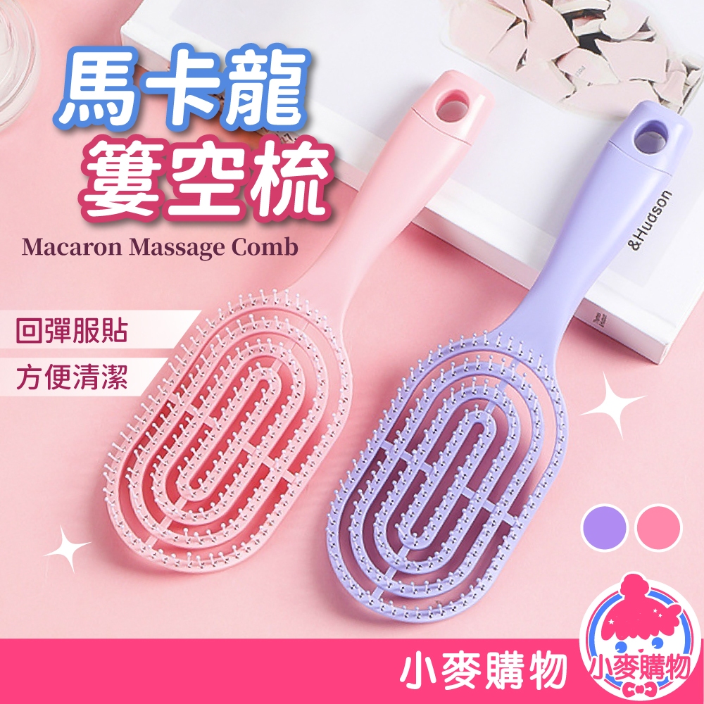 馬卡龍簍空梳 梳子 兩用梳 髮根蓬鬆 寬齒梳 造型梳 頭皮按摩梳 美髮梳【小麥購物】【Y106】丁香紫|胭脂粉Hair Tools 小麥購物