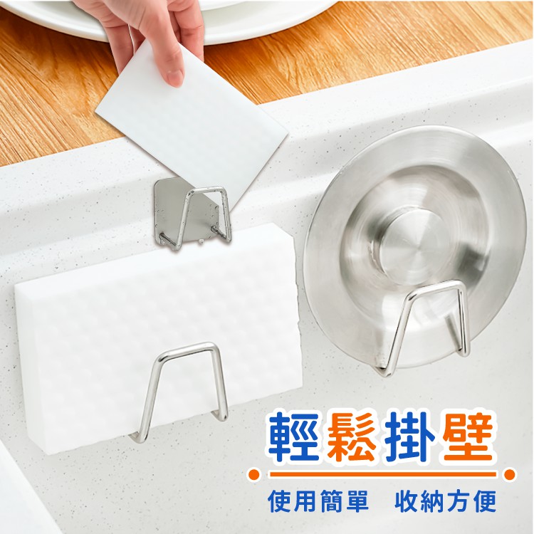 不鏽鋼海綿收納架 收納架 瀝水架 菜瓜布架 鍋蓋架 免打孔 浴室置物架 廚房收納架 掛架 置物架【小麥購物】【Y496】銀色|黑色Kitchen Racks 小麥購物