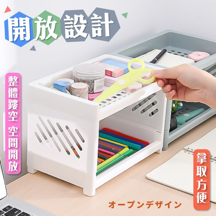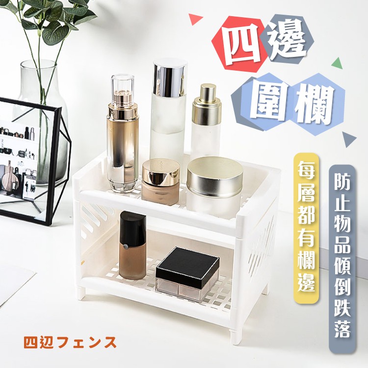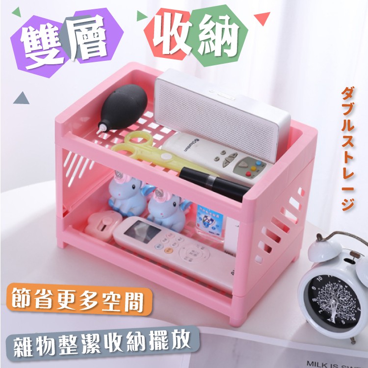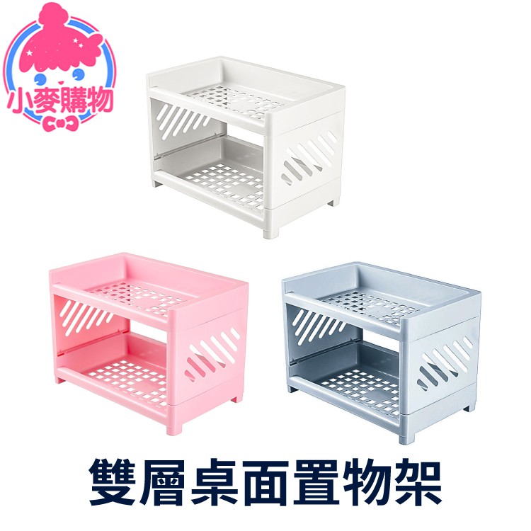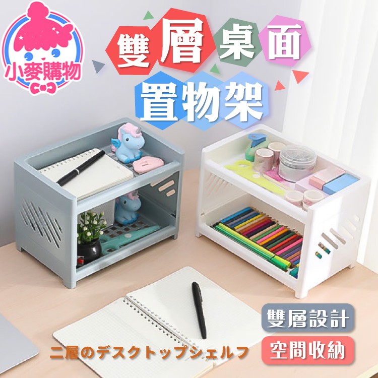 雙層桌面置物架 置物架收納架 文具架 整理架 化妝品架 展示架 廚房收納 桌面收納 桌面置物架【小麥購物】【Y698】白色|藍色Shelves & Racks 小麥購物