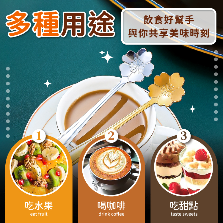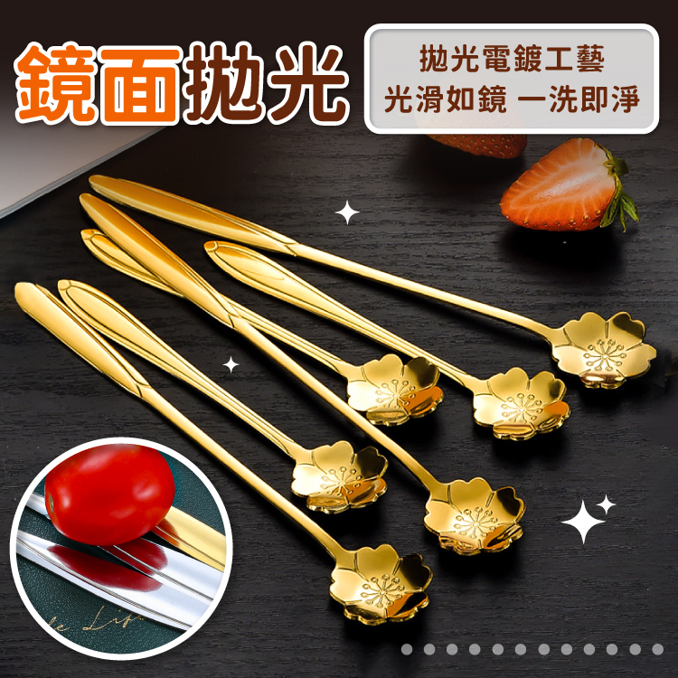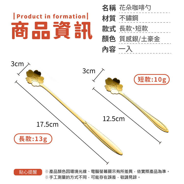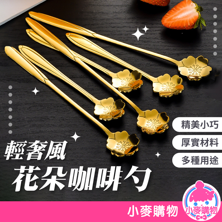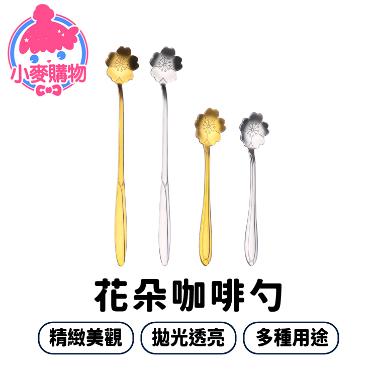 花朵咖啡勺 餐具 湯匙 攪拌棒 勺子【小麥購物】24H出貨 禮物 不鏽鋼餐具 冰淇淋匙 咖啡勺 餐具 甜點勺【G567】土豪金|長款|質感銀|短款|質感銀|長款Cutleries 小麥購物