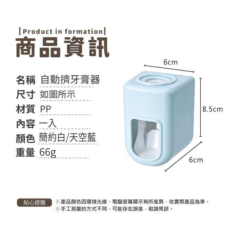 牙膏架 自動擠牙膏器 牙膏收納 擠牙膏 擠壓器 浴室 牙膏 免打孔 定量 居家 北歐風 可拆卸【小麥購物】【G561】簡約白|天空藍Toothbrush Holders & Toothpaste Dispensers 小麥購物