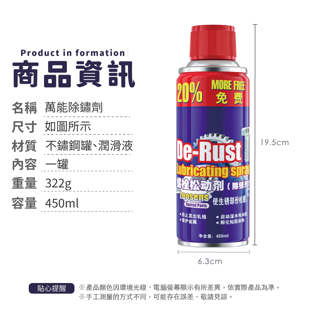 萬能除鏽噴霧 防鏽噴霧 除鏽油 除鏽劑 防鏽劑 防鏽潤滑劑 鐵鏽去除劑 防鏽噴霧 防鏽劑【小麥購物】【G396】450mlOthers 小麥購物