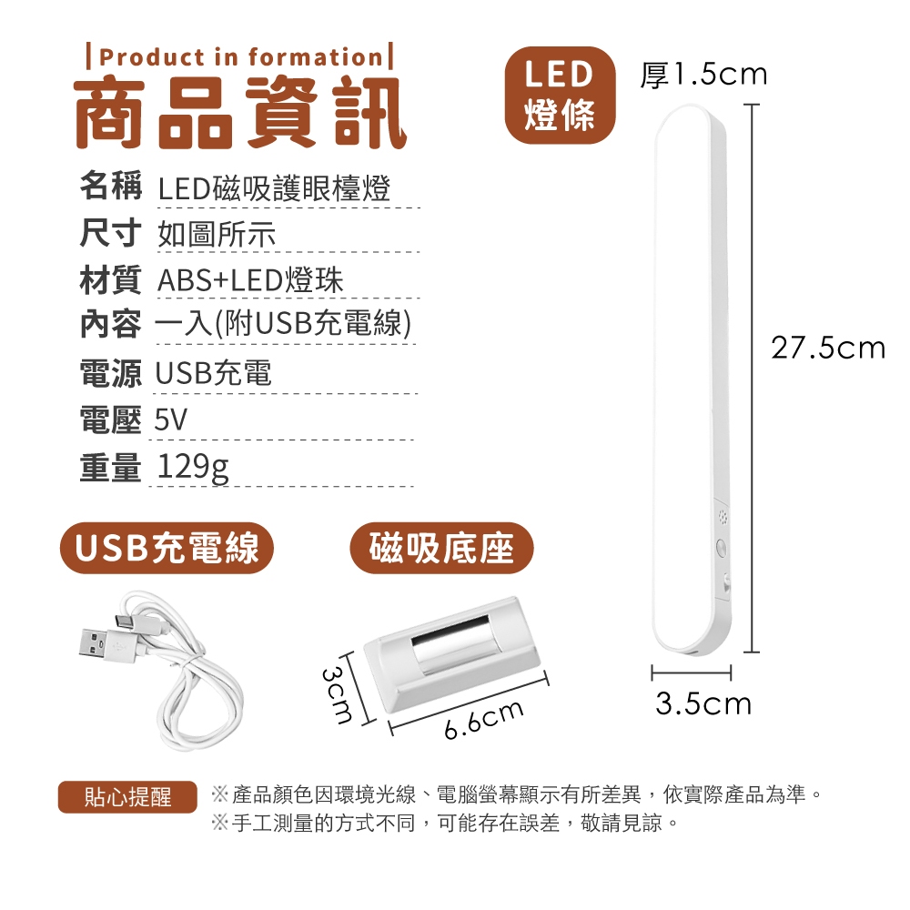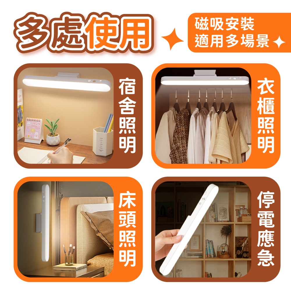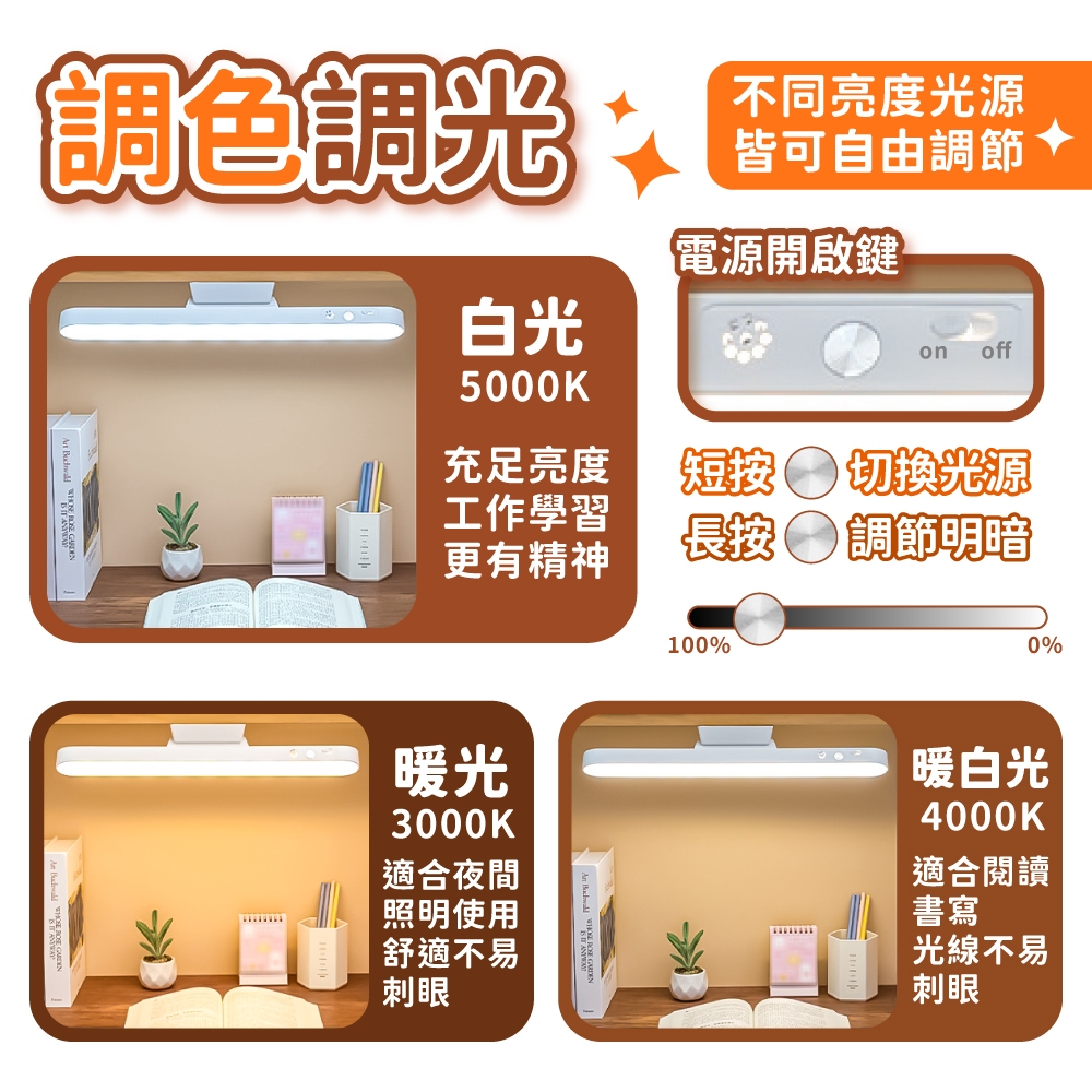 LED磁吸護眼檯燈 LED磁吸閱讀燈 三色調光 燈條 護眼檯燈 磁吸燈 小夜燈 壁燈 桌燈 燈【小麥購物】【C568】28cm【三檔色溫/調光】 小麥購物