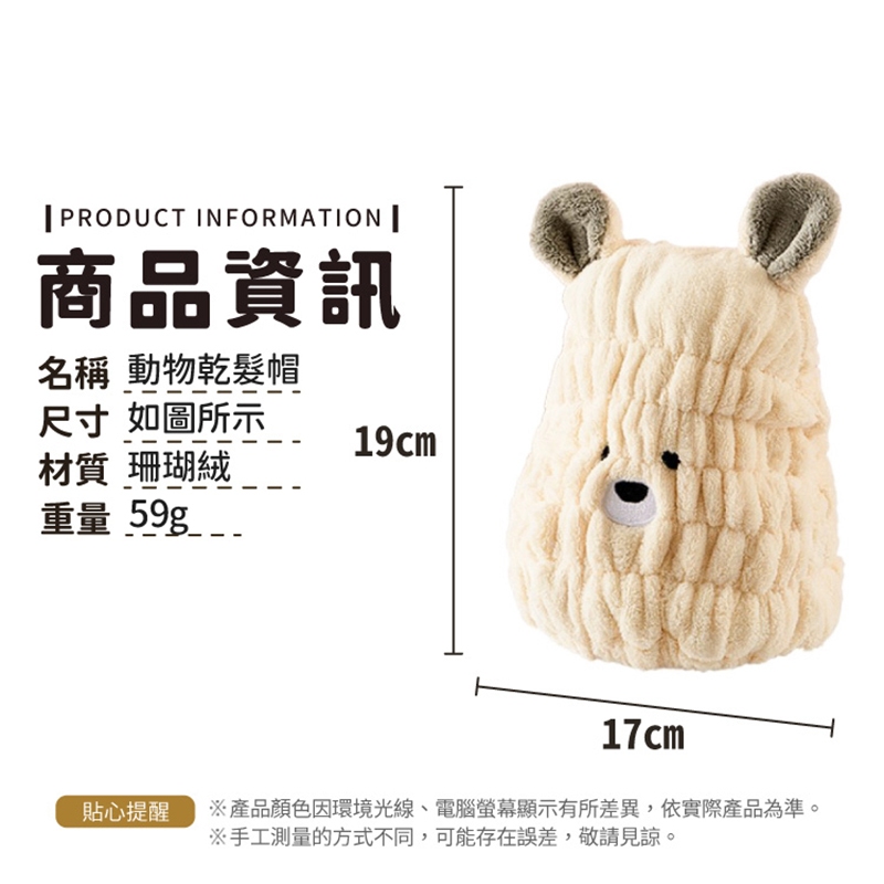 動物乾髮帽 擦髮帽 珊瑚絨 動物款 包頭巾 乾髮毛巾 吸水帽 浴帽 擦髮浴帽 珊瑚絨毛巾 速乾【小麥購物】【Y577】粉色熊熊|咖啡熊熊|灰色熊熊|米色熊熊Shower Caps 小麥購物