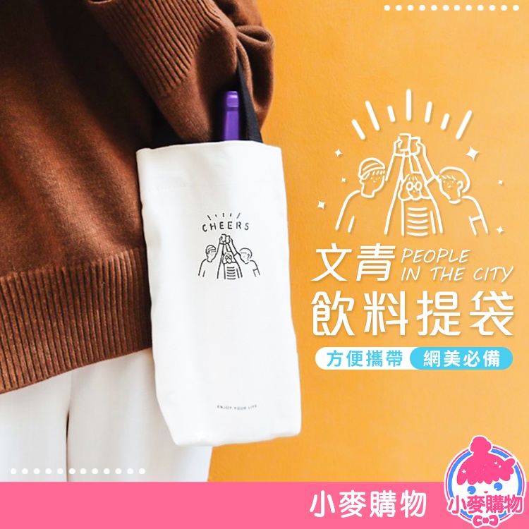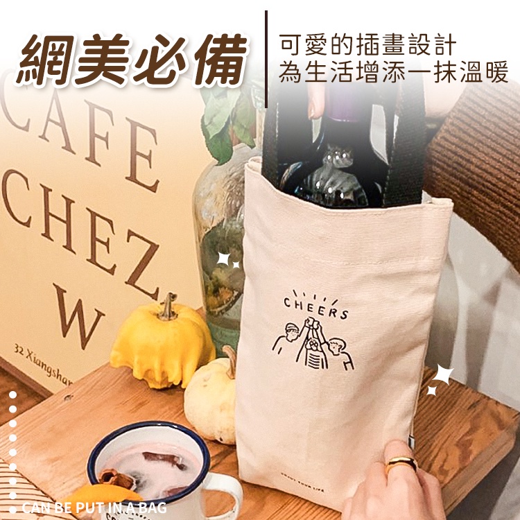 文青帆布飲料提袋 水壺袋 帆布袋 手提袋 杯套 杯袋 環保袋 水壺 飲料 文青 提袋 背袋【小麥購物】【G508】黑色提把|紅色提把Others 小麥購物