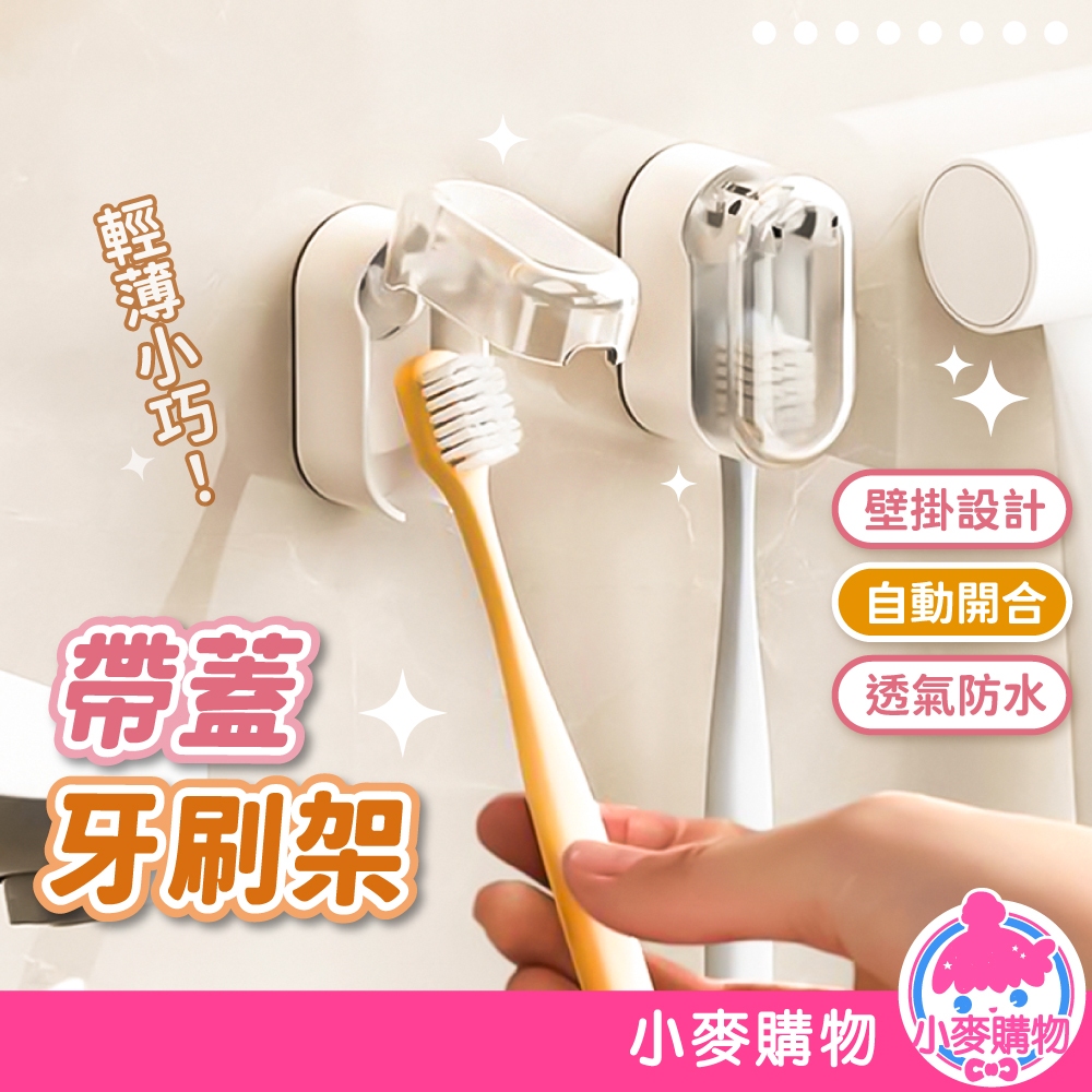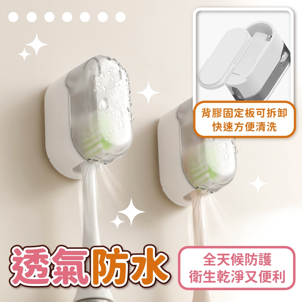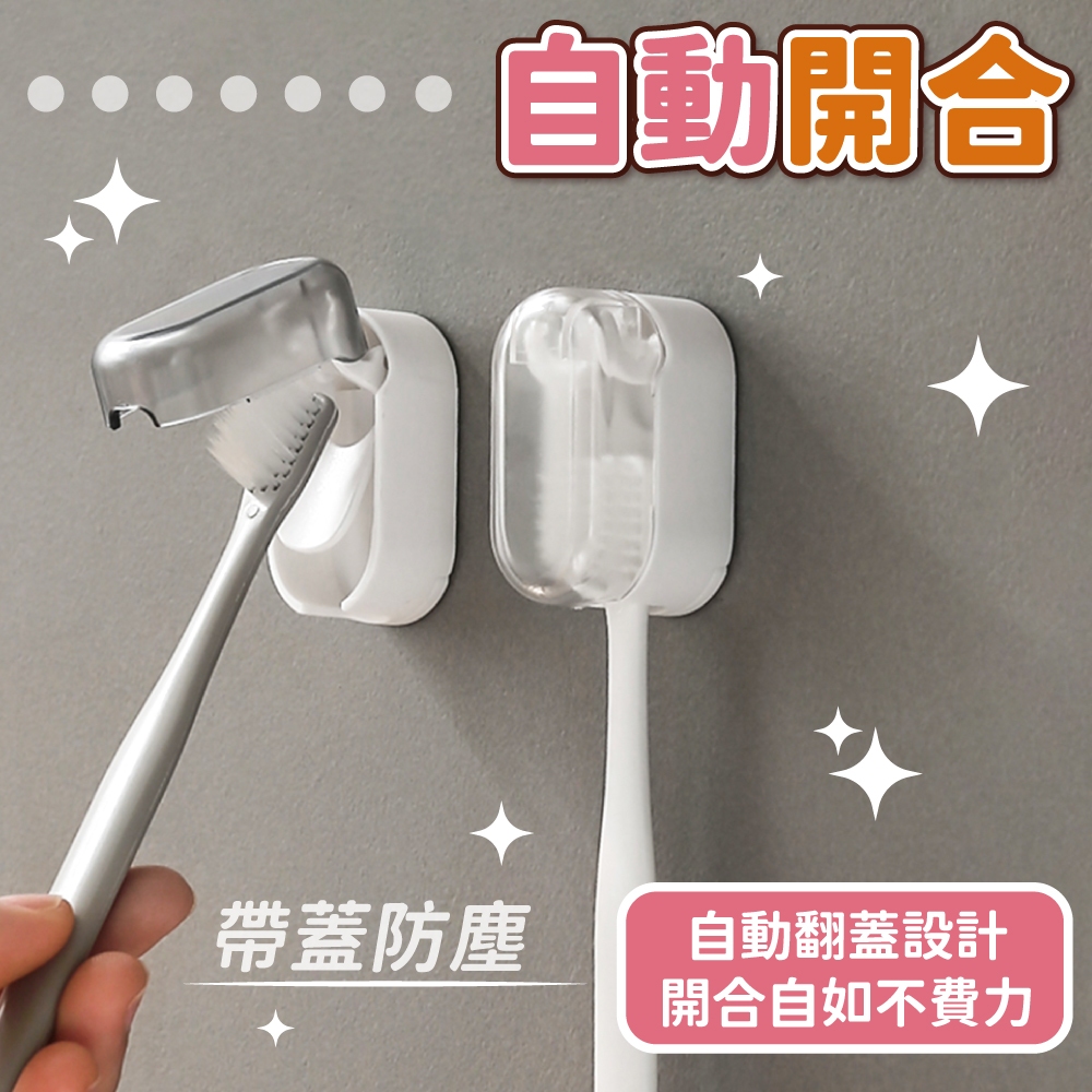 帶蓋牙刷架 自動開合 牙刷架 壁掛牙刷架 牙刷套 牙刷 防塵蓋 牙刷收納 牙刷掛架 浴室收納【小麥購物】【Y948】透灰|透白Toothbrush Holders & Toothpaste Dispensers 小麥購物