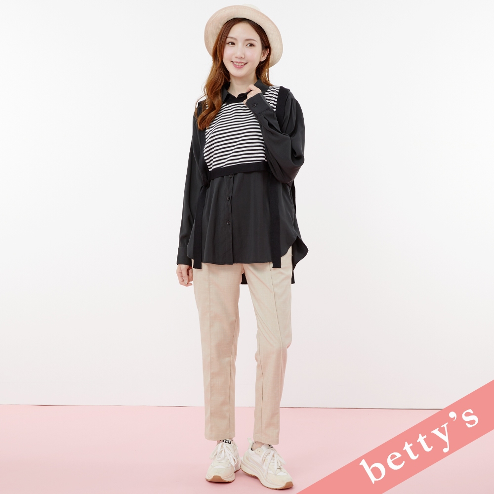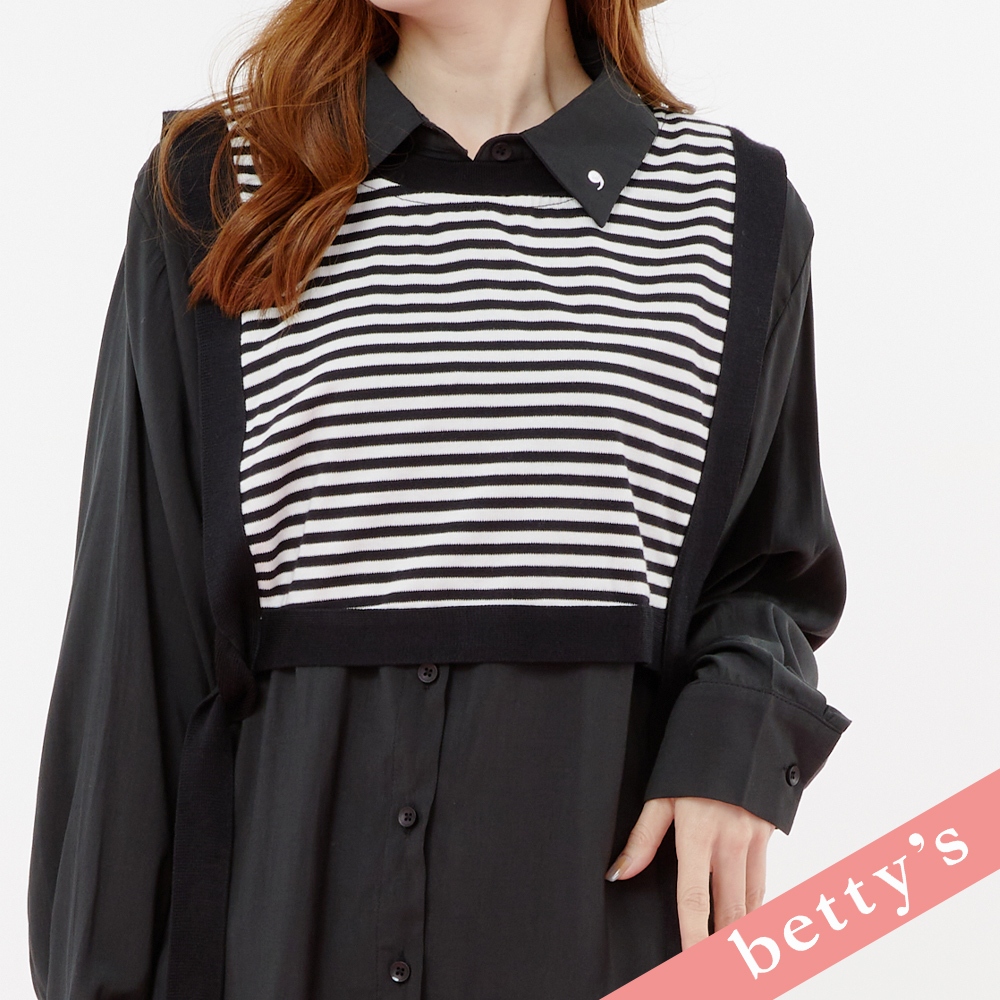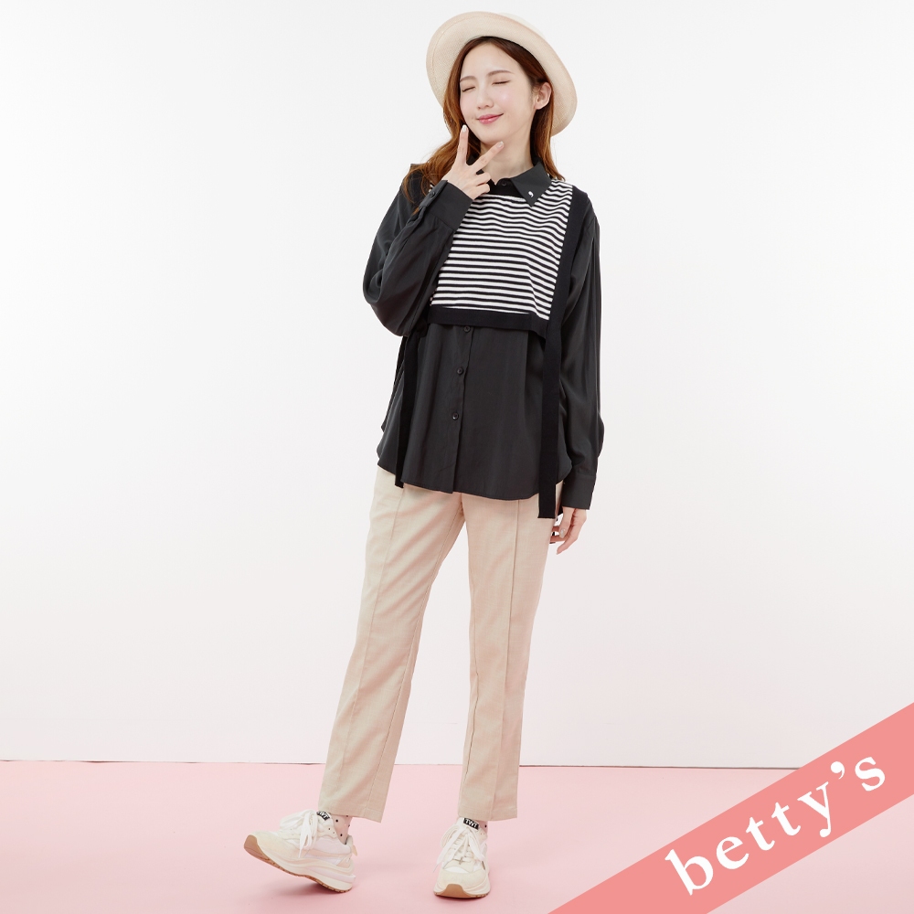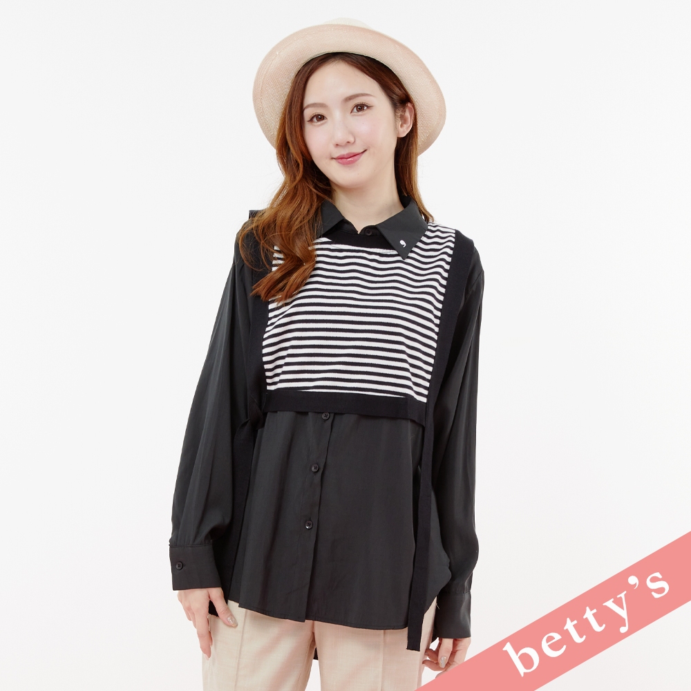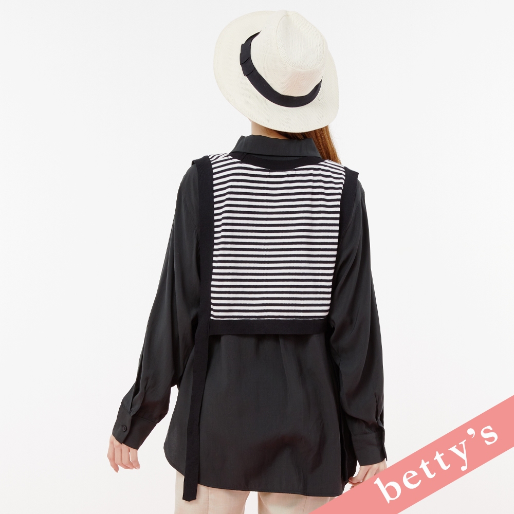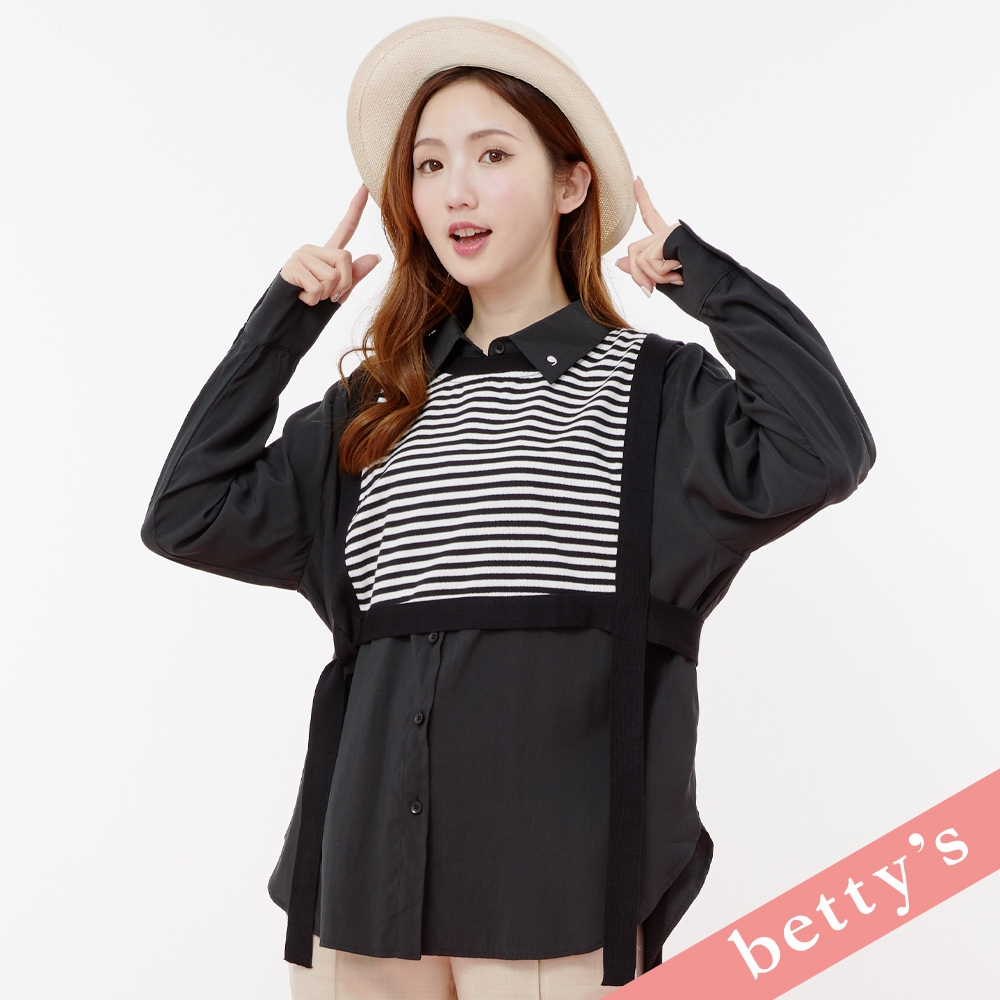 betty’s貝蒂思(31)兩件式條紋短背心綁帶襯衫(黑色)黑色,M|黑色,LShirts & Blousesbetty’s貝蒂思