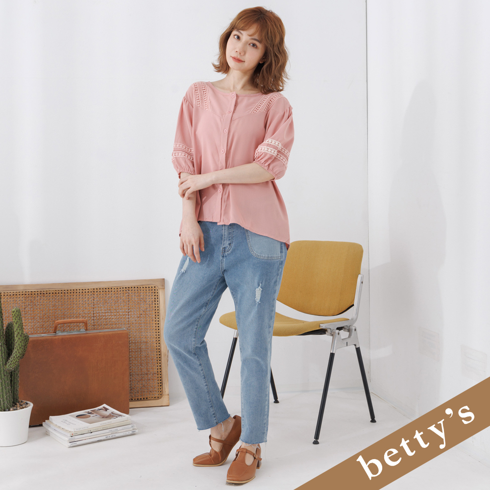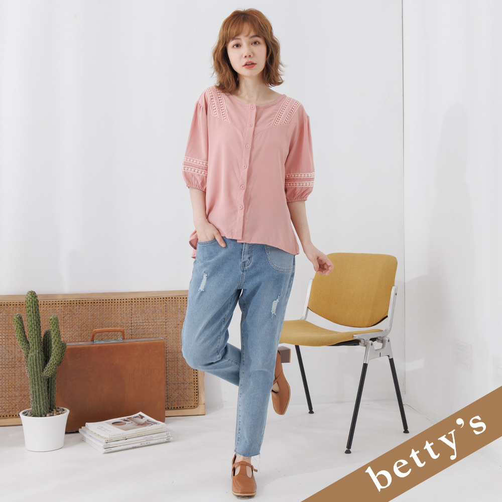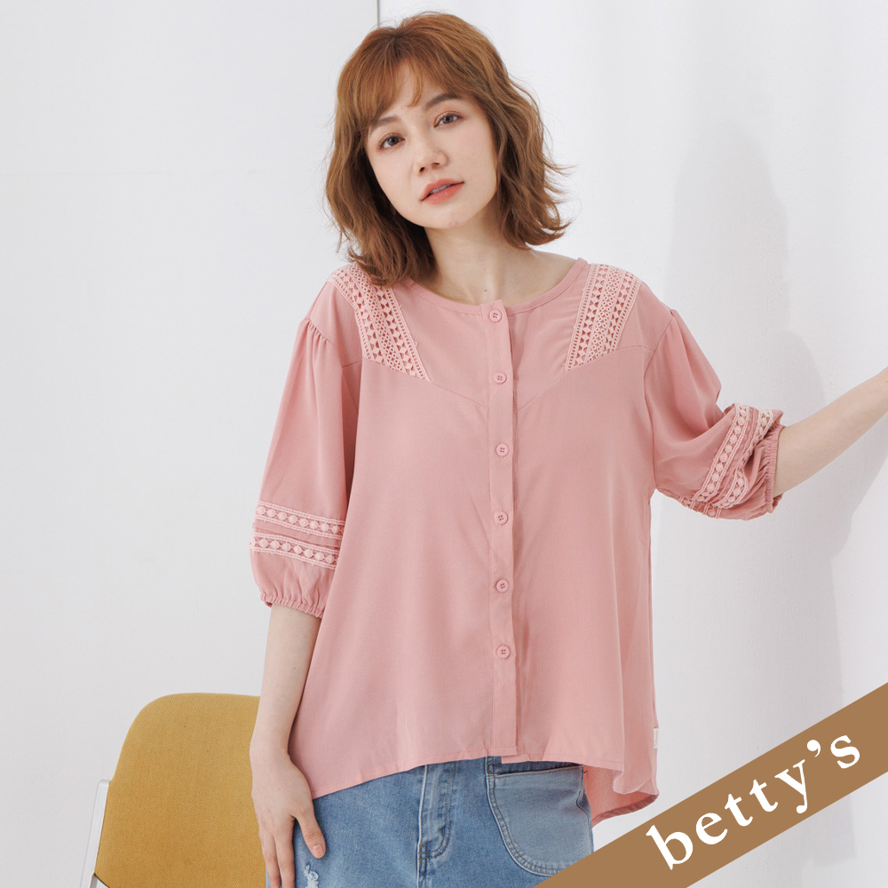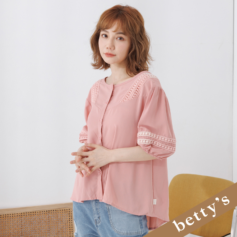 betty’s貝蒂思(25)雪紡蕾絲小澎袖上衣(深粉色)深粉色,FShirts & Blousesbetty’s貝蒂思