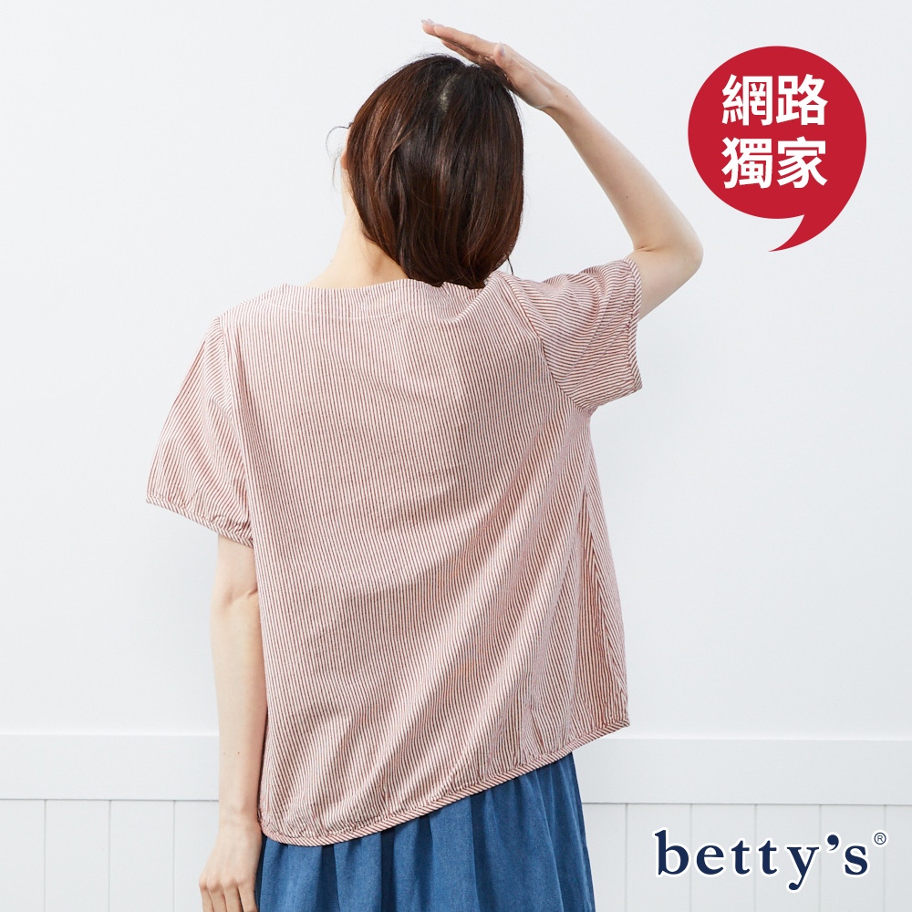betty’s貝蒂思(50)優雅拼接條紋棉質上衣(共二色)紅色|黑色T-shirtsbetty’s貝蒂思