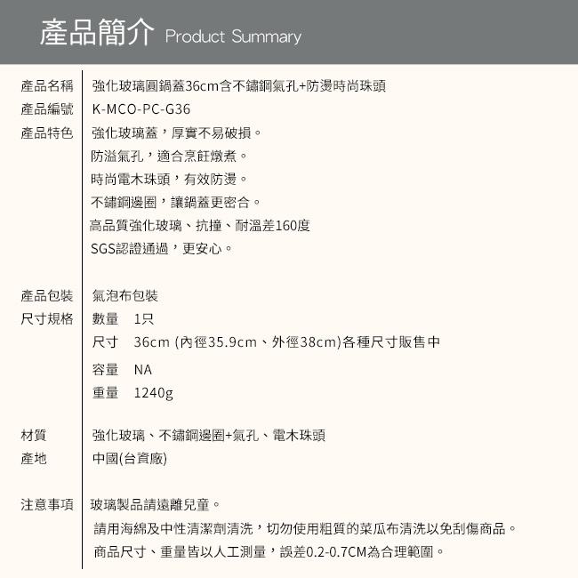強化玻璃圓鍋蓋36cm強化玻璃圓鍋蓋36cmOthers TRANYO 品牌鍋具館